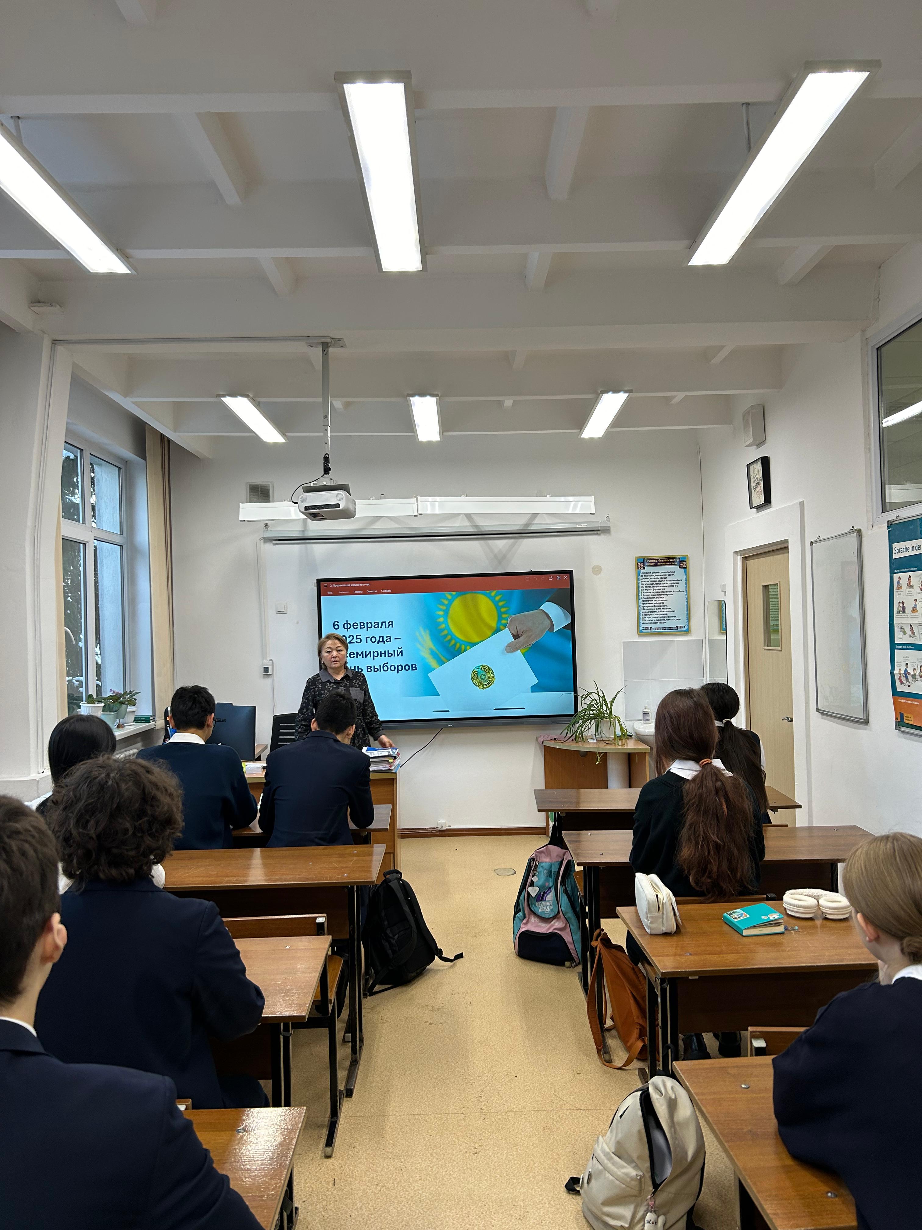 2025 жылдың 3 ақпанында 5-11 сынып жетекшілері «Әр дауыс маңызды: демократиялық қоғамдағы сайлаудың рөлі» атты бірыңғай сынып сағатын өткізді.