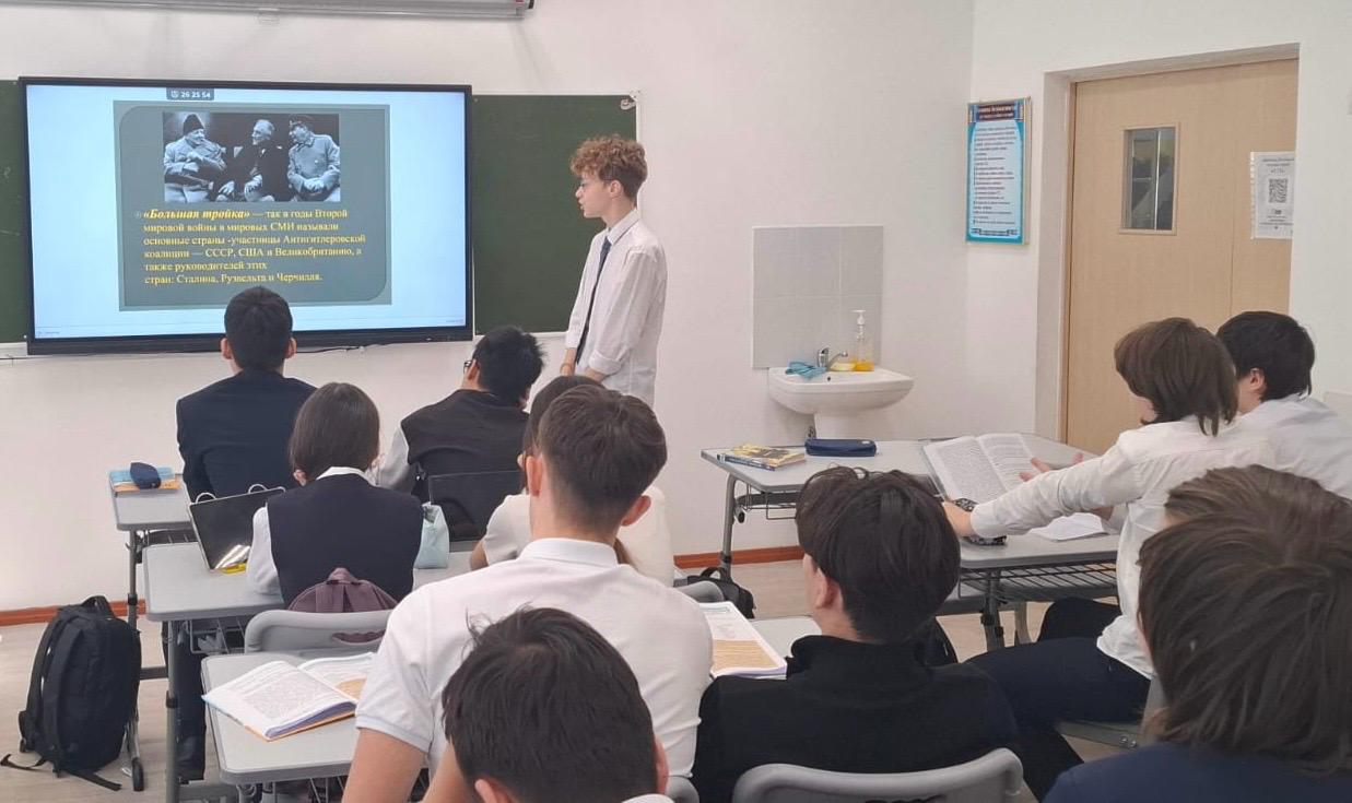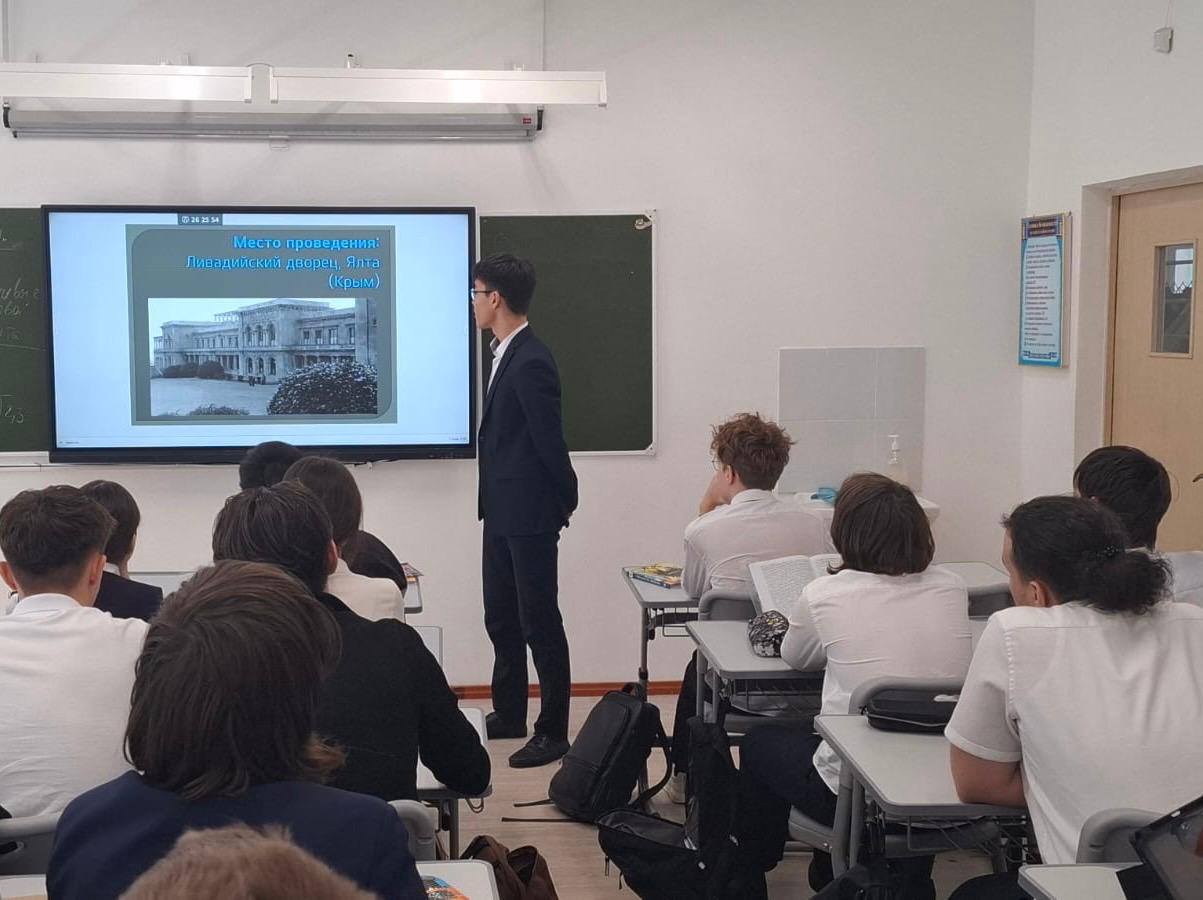 4.02.25 г в рамках «Месяца значимых дат Второй мировой войны» Воронов А.С. провел мероприятие, посвященное началу Крымской (Ялтинской) конференции руководителей трех ведущих государств – И.Сталина, Ф.Рузвельта и У.Черчилля. Учащиеся узнали о работе конференции ,о планах союзных держав, об изменениях в политической системе в послевоенные годы, о системе международной безопасности.