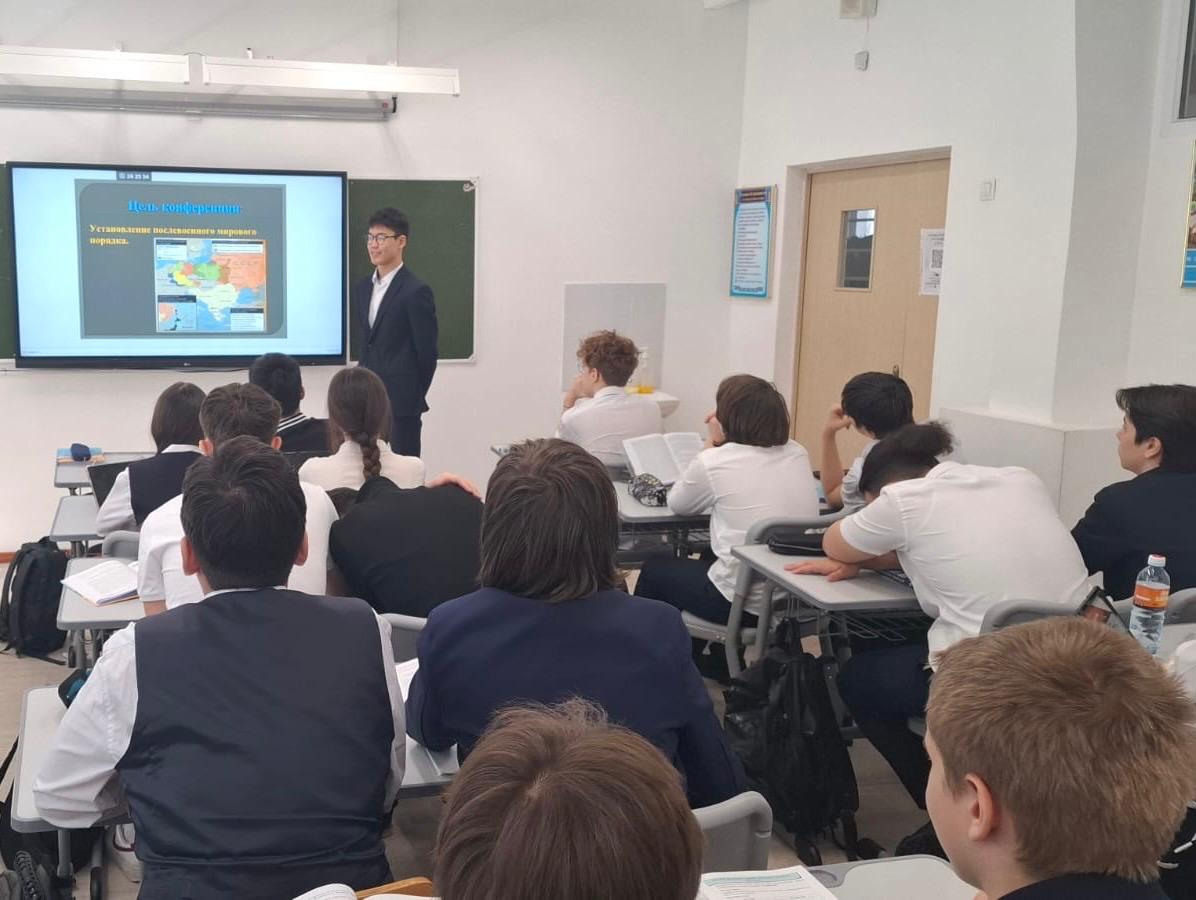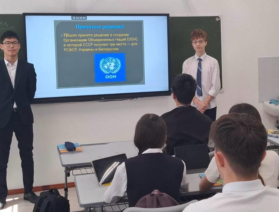 Оқушылар конференцияның жұмысы, одақтас мемлекеттердің жоспарлары, соғыстан кейінгі жылдардағы саяси жүйедегі өзгерістер және халықаралық қауіпсіздік жүйесі туралы мағлұмат алды.