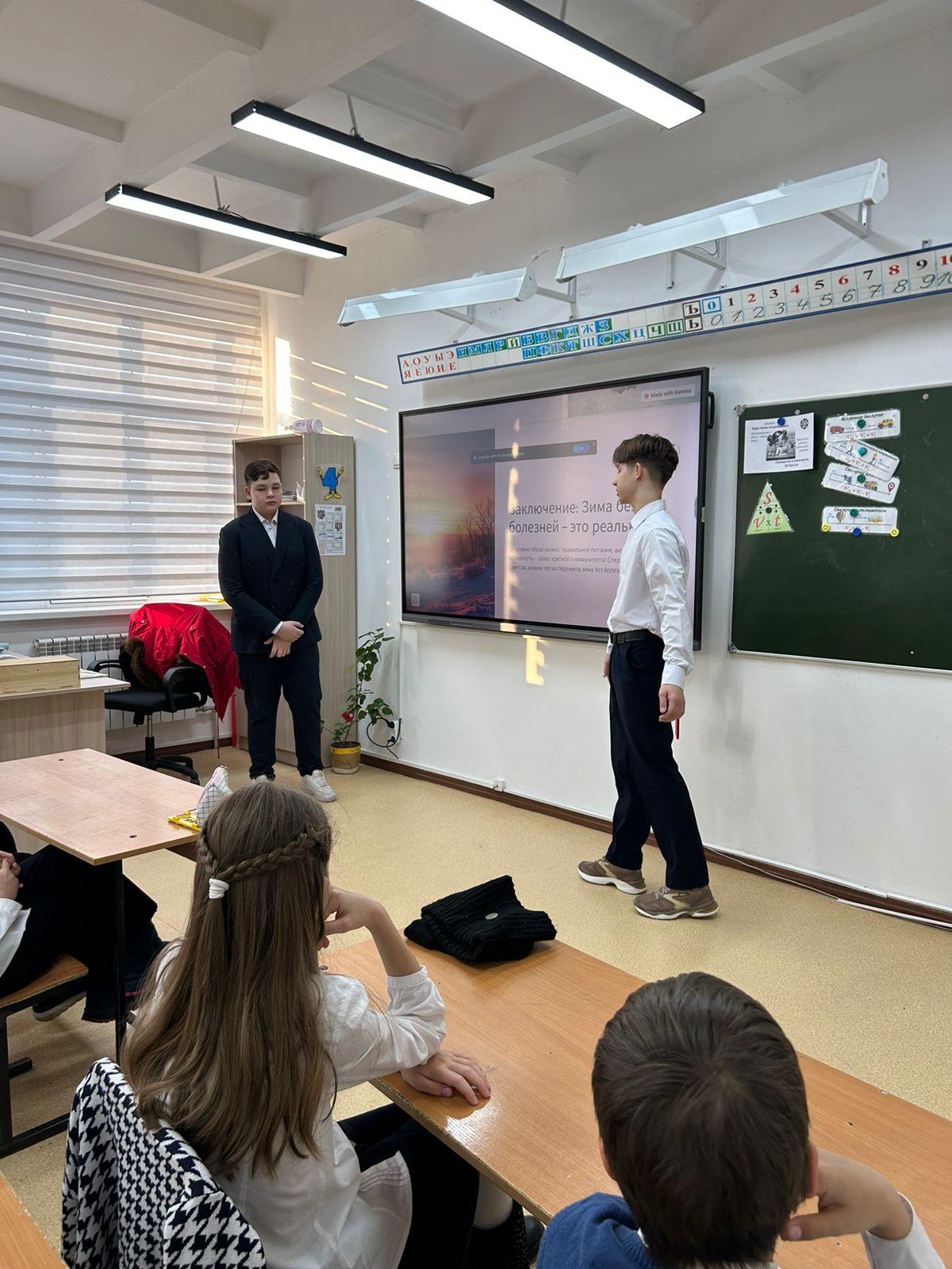 10.02.25 фракция "Спорта и ЗОЖ" провела беседу с учащимися 4-х классов на тему: "Как не заболеть зимой?".