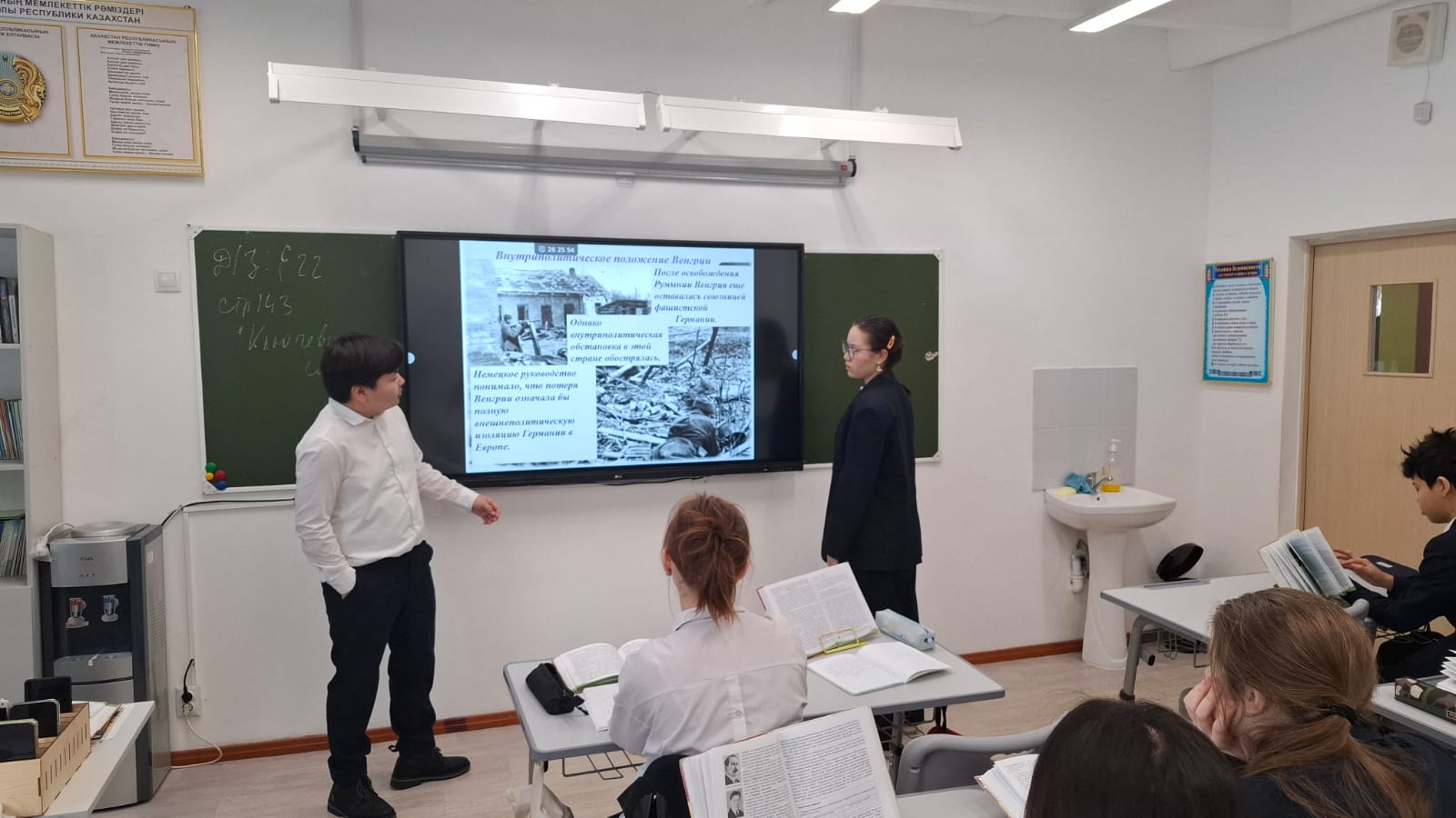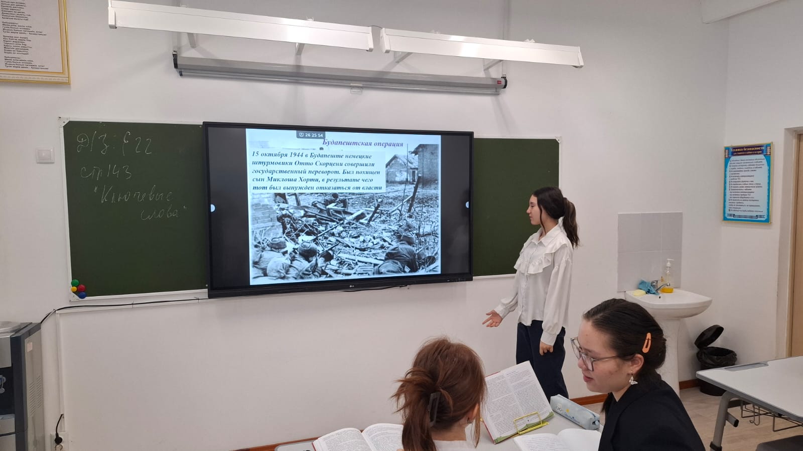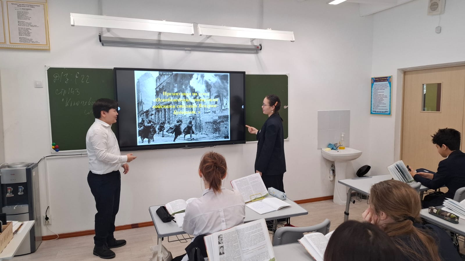 «Екінші дүниежүзілік соғыстың маңызды күндері» аясында 2025 жылдың 13 ақпанында тарих пәнінің мұғалімі Воронов А.С. Кеңес әскерлерінің Венгрия астанасын алуына арналған әңгіме өткізді. Оқушылар бұл оқиғаның Екінші дүниежүзілік соғыс тарихындағы маңызы мен рөлі туралы білді.