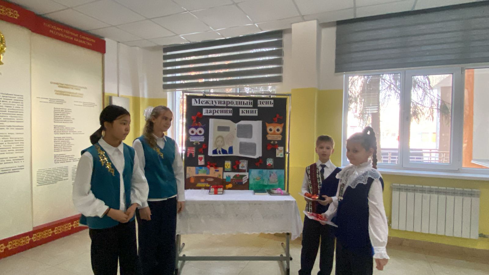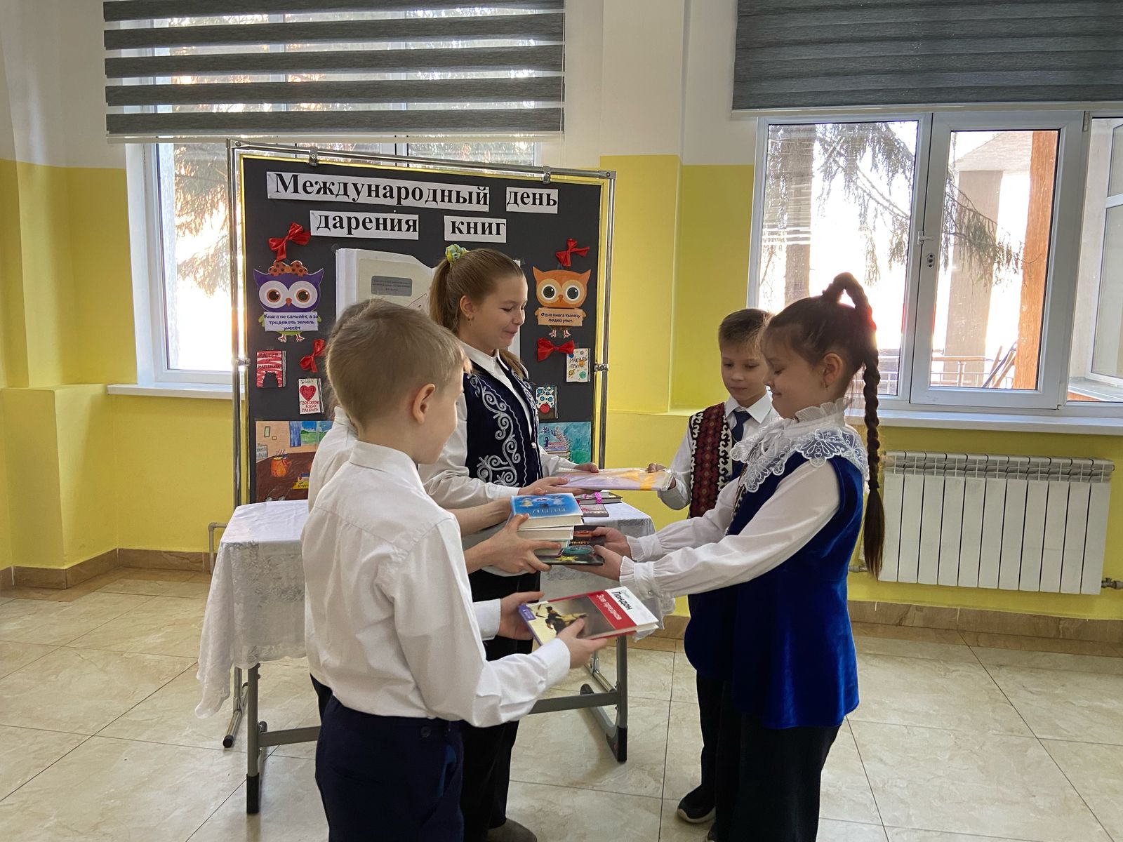 " Дарите книги с любовью", приуроченной к Международному дню книгодарения, была проведена выставка, направленная на дарение книг. . Главная идея Акции – напомнить о том, что книга была и остается прекрасным подарком. И этот подарок очень ждут дети и что необходимо с малых лет читать хорошие книги, пропагандируя тем самым важную роль детской книги в формировании духовного и интеллектуального облика новых поколений Земли.Учащиеся 5-7 классов подарили книги младщим классам, красивые, яркие, цветные книги, которым малыши очень обрадовались. Также учащиеся подарили книги библиотеке школы. Мероприятие вдохновило учащихся дарить книги друг другу, проявляя взаимоуважение и осознавая, что бумажная книга всегда останется ценным подарком!