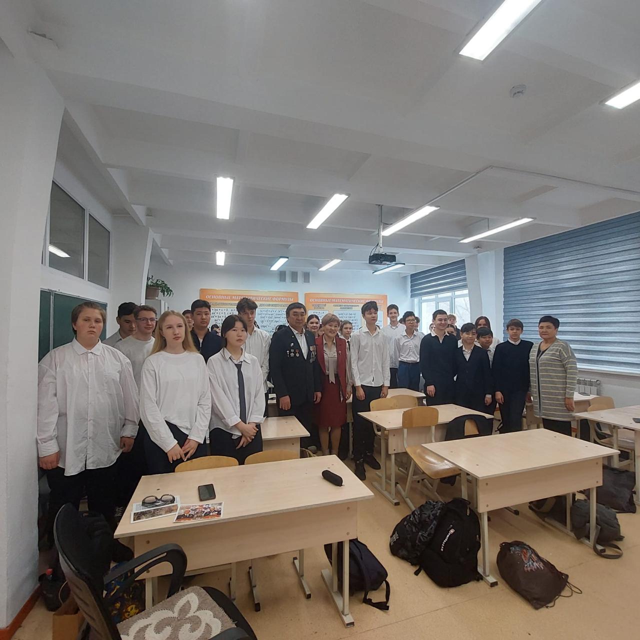 В день вывода войск из Афганистана классными руководителями Ракишевой З.М.(9 «Г» ), Тасыбаевой Т.С (8 «Г») проведена встреча с воином-афганцем Кунанбаевым А.Учащиеся узнали о различных моментах Афганской войны, о подвигах солдат, о героизме простых молодых парней, отправившихся отстаивать честь Родины. Школьники с большим вниманием слушали выступление человека, который прошел испытание войной. Слушая рассказы о боевых эпизодах войны, ребята с трудом представляли, через что пришлось пройти солдатам, что пережить.