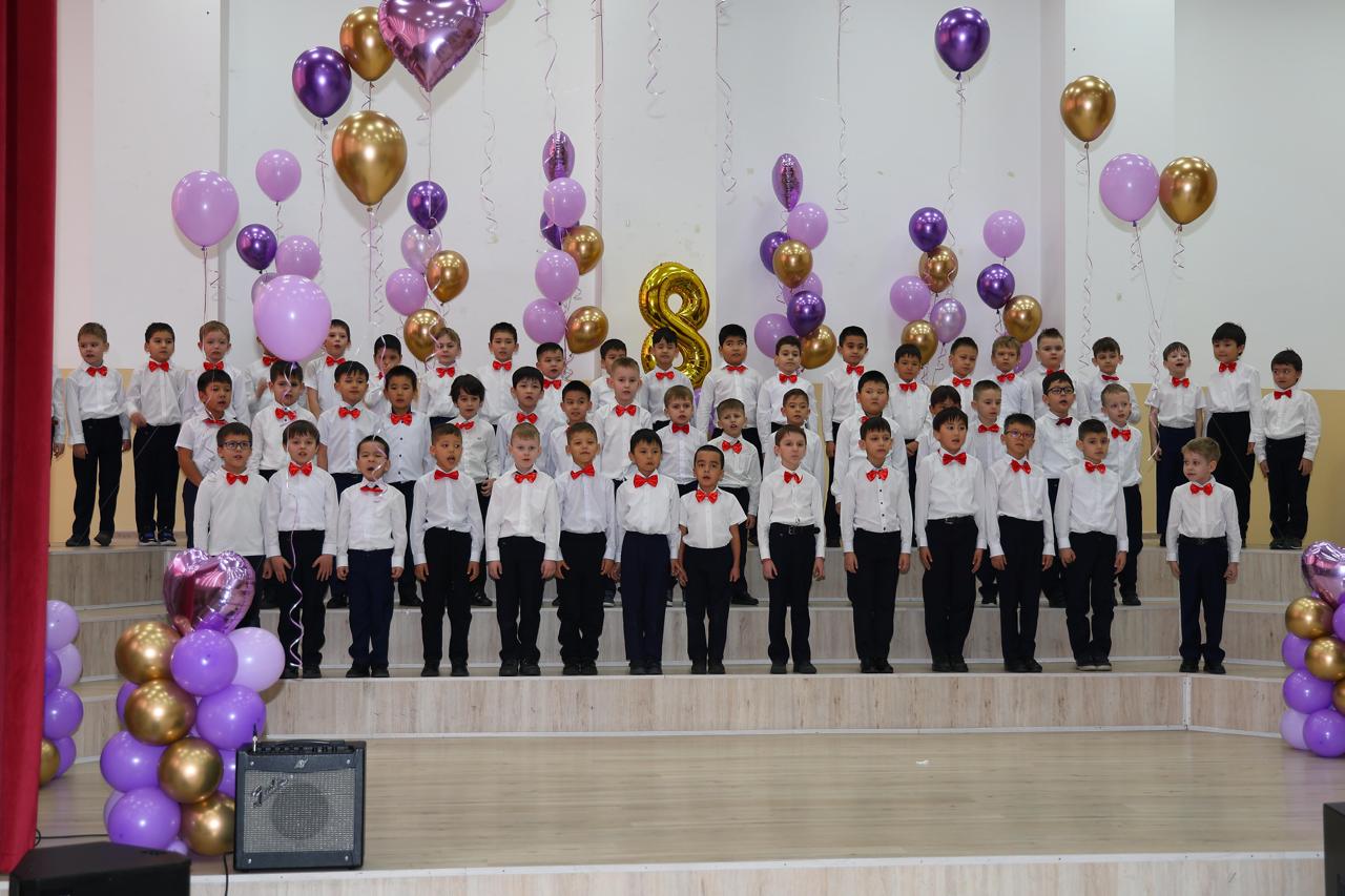 Концерт ұлдар хорының жарқын өнер көрсетуімен басталды. Алғашқы аккордтардан-ақ олар көрермендерді мерекелік атмосфераға бөледі. Концерттік бағдарламада әндер, билер, көріністер болды – мұның барлығы мейрамның сәнін келтірді.