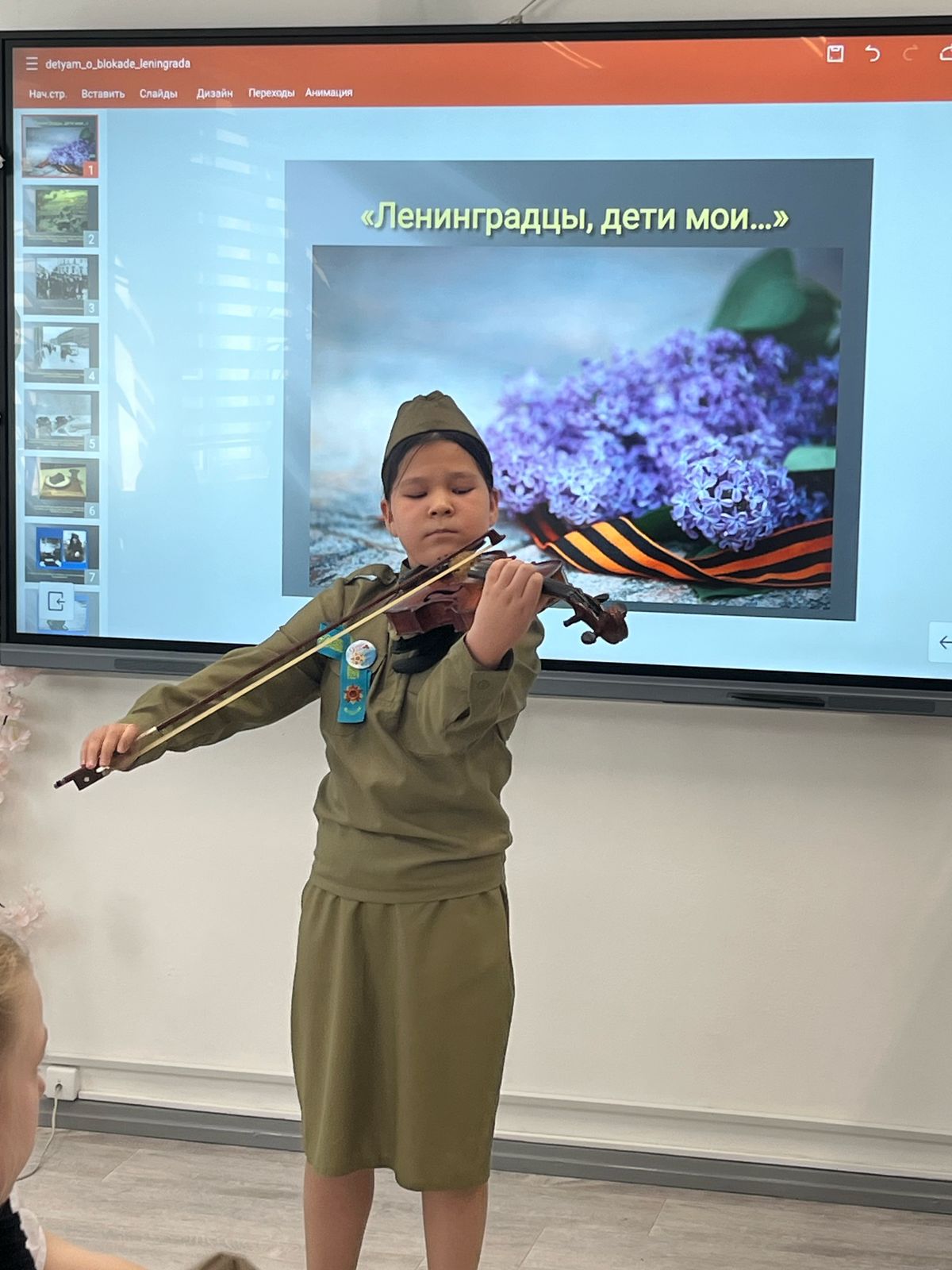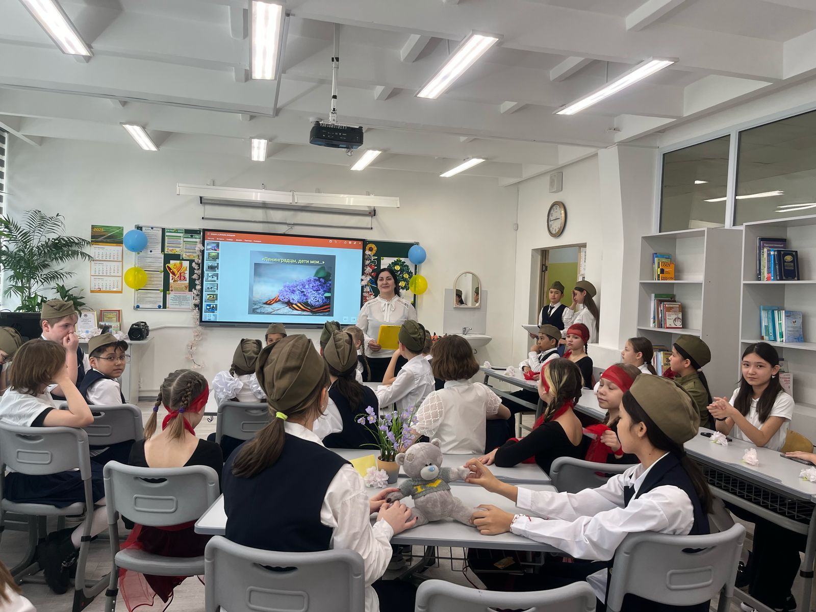 Қоғамдық-гуманитарлық пәндер онкүндігі аясында орыс тілі мен әдебиеті пәнінің мұғалімі Л.А. Дадаева Ұлы Жеңістің 80 жылдығына орай 5-сынып оқушылары арасында "Ленинградтықтар, менің балаларым"тақырыбында сыныптан тыс іс-шара өткізді. Ленинградты қоршау-Ұлы Отан соғысы тарихындағы қайғылы кезеңдердің бірі. Бұл естеліктерді өзімен бірге алып жүретін аға буын үшін бұл олар ешқашан ұмытпайтын өмірдің бір бөлігі. Ленинградтықтардыңвигігі фашизмге қарсы күресте кеңес халқының табандылығы мен героігінің жарқын мысалы болды. Балалар өлгендерді метрономның үнімен бір минут үнсіздікпен еске алды. Мұндай іс-шаралар патриотизм мен тарихқа қатысу сезімін тәрбиелеуге ықпал етеді, оқушылардың эмоционалды реакциясын тудырады.
