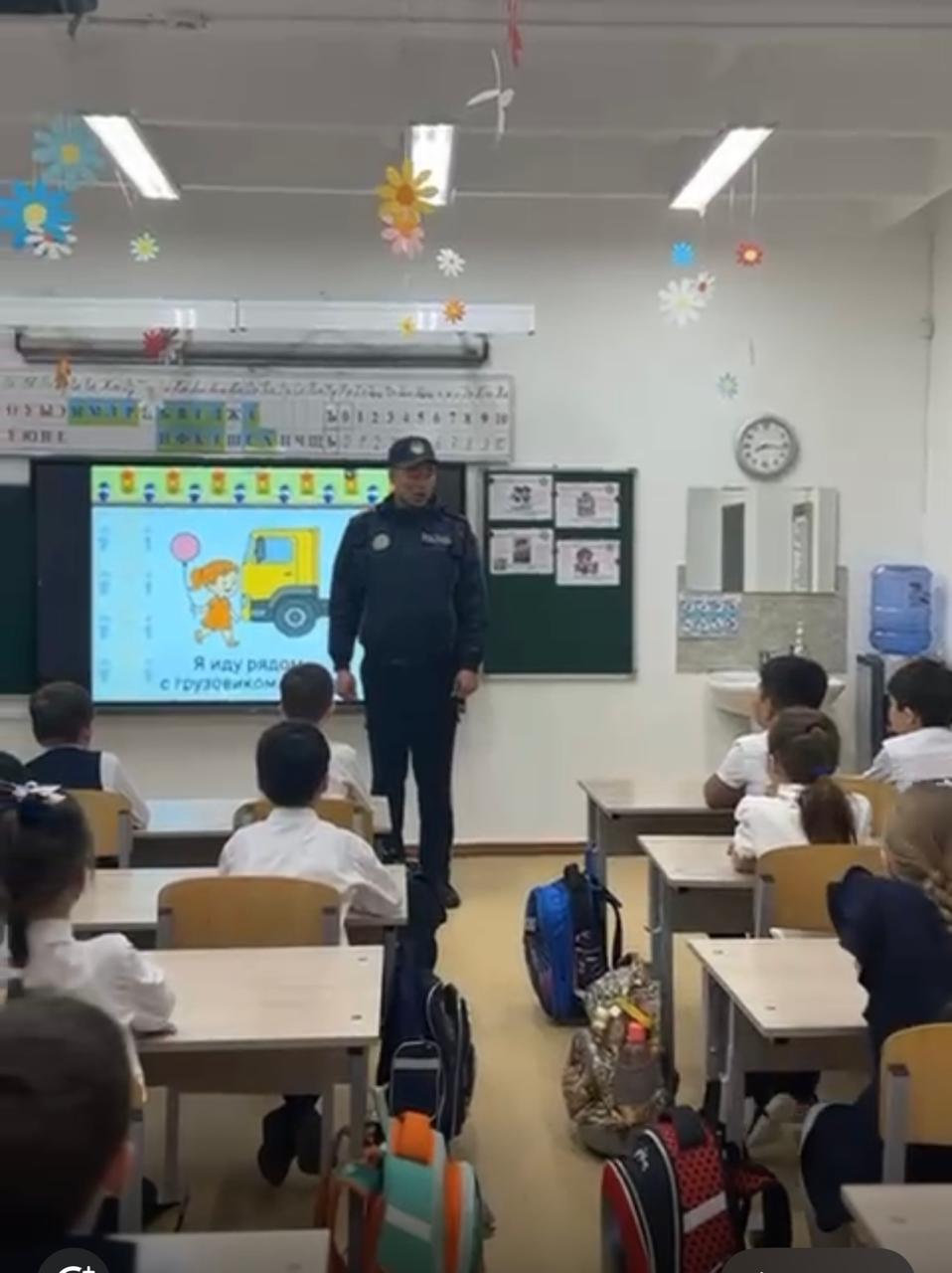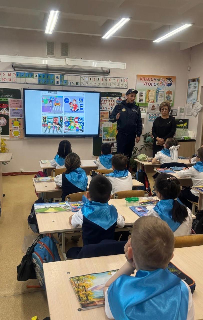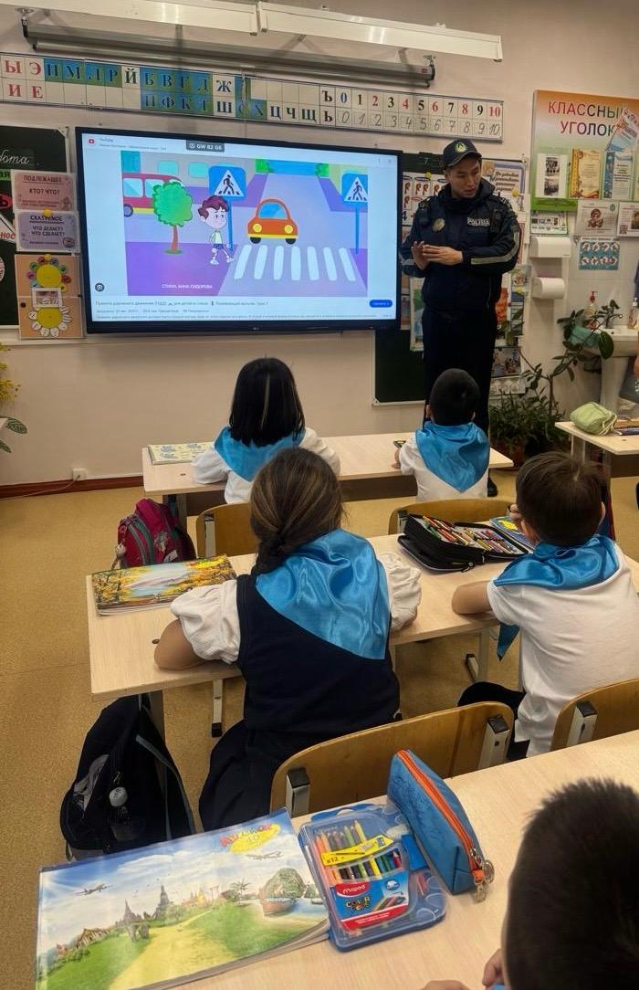 2025 жылғы 7 сәуірде полицияның аға лейтенанты Смаил Ерсін оқушылармен жол қозғалысы ережелері бойынша әңгіме өткізді. Кездесу барысында ол көшені дұрыс кесіп өтудің жолдарын көрсететін бейнефильм ұсынды. Сонымен қатар, ол көліктерді тек арт жағынан айналып өту керектігін айтты, жүк көліктерінің терезелерінен жаяу жүргіншілердің көрінуінің маңыздылығын талқылады және кәмелетке толмағандардың электрсамокаттар мен мопедтерді басқаруына тыйым салынатынын ерекше атап өтті.