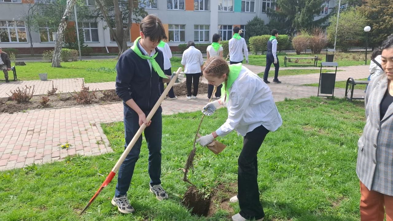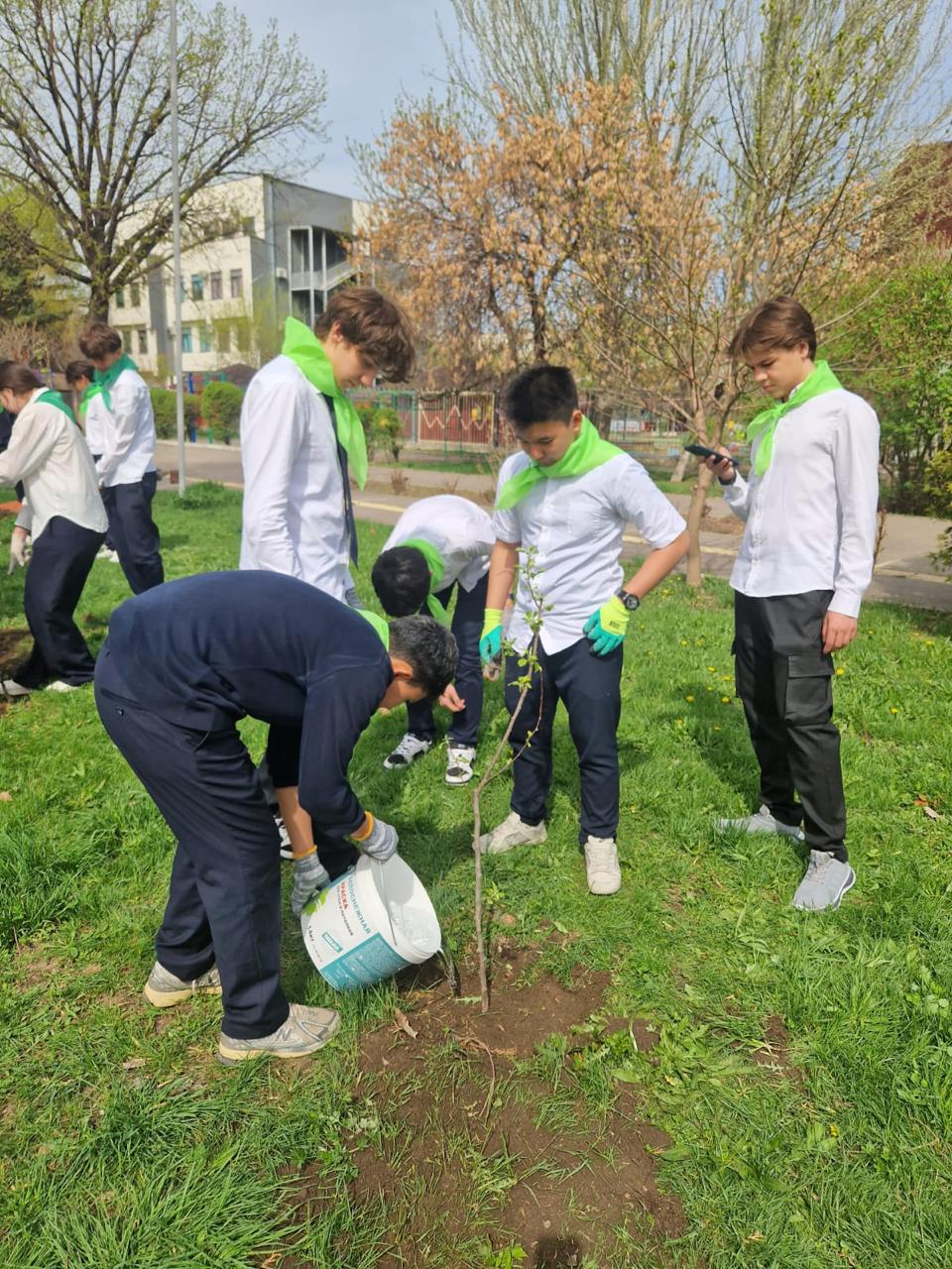 2025 жылғы 11 сәуірде гимназия оқушылары күрек пен шелек алып, мектеп аумағына ағаш отырғызуға шықты — олар алма ағаштары мен сирень отырғызды. Жұмыс қызу жүріп жатты: біреулер шұңқыр қазса, екіншілері су әкеліп жүрді, ал қалғандары көшеттерді мұқият отырғызды. Біраз уақыттан кейін балалар өз еңбектерінің нәтижесіне риза болып, болашақта көз қуантатын әрі сая бола алатын жас ағаштардың тік қатарларына тамсана қарады.