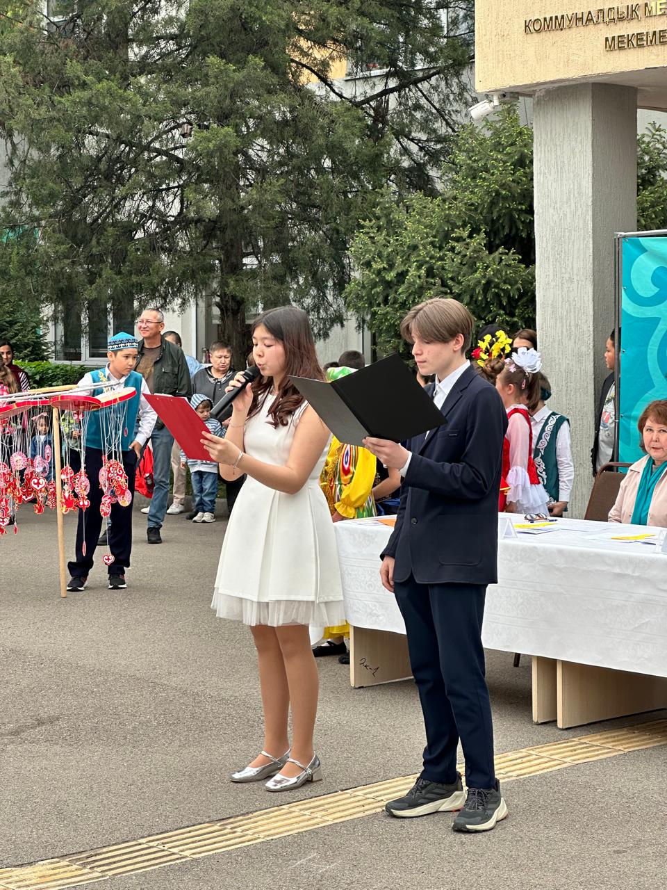 Осознание непреходящей ценности каждого языка и каждой культуры, понимание того, что любой язык-это частица духовного наследия всего человечества. А культура всякого народа-это бесценный вклад в мировую цивилизацию. С этой целью 30.04.2025г в нашей гимназии среди параллели 5— 7 классов прошел фестиваль «Под шаныраком дружбы». Все параллели приняли активное участие. Зрелищно, ярко, творчески подошли учащиеся к каждому номеру. Программа фестиваля получилась динамичной, с хорошо выдержанной темой и полным раскрытием сюжета. За активное участие и вклад проведения фестиваля «Под шаныраком дружбы» обьявить благодарность классным руководителям параллели 5-х, 6-х, 7-х классов!