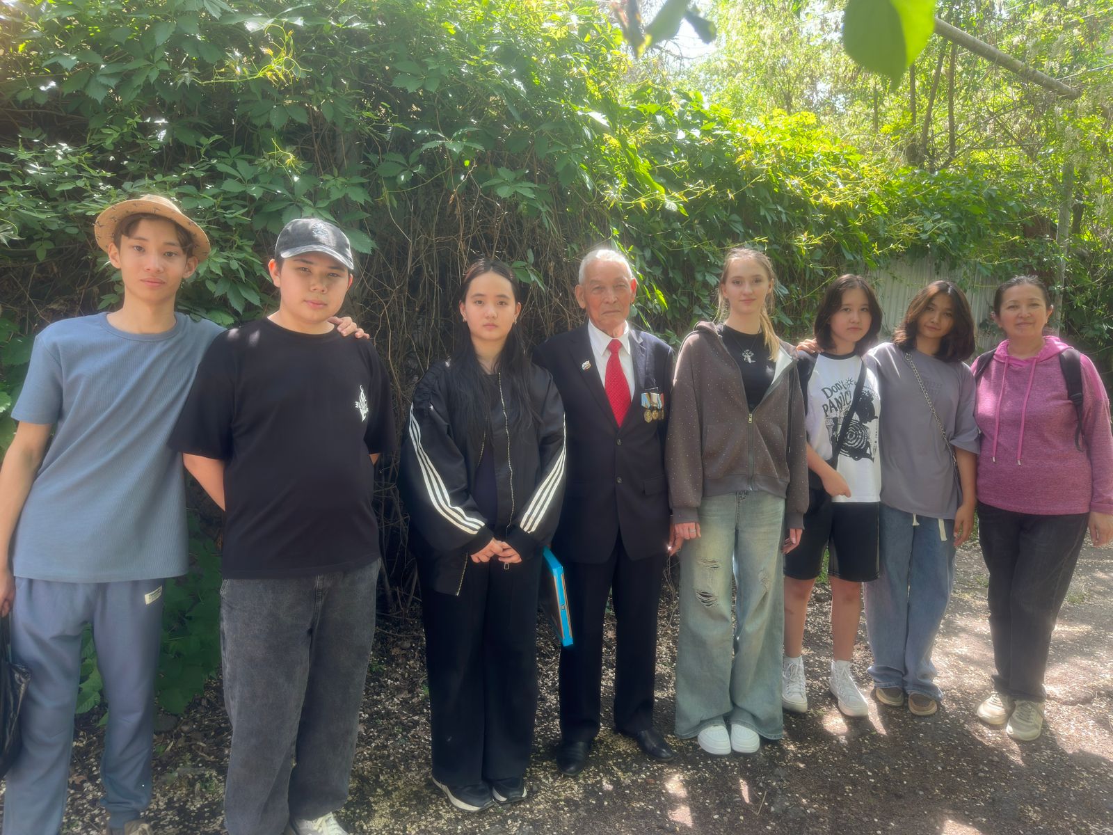 Накануне 80-летия со Дня Победы учащиеся 8-«Б» класса посетили Садыкова Тельмана, приравненного к ветеранам Великой Отечественной войны. Садыков Тельман рассказал ребятам о своей жизни, о трудных молодых годах, пришедшихся на военное и послевоенное время, а также о наградах, которыми он был удостоен за самоотверженный труд и верность Родине. Школьники с большим интересом слушали рассказ ветерана, задавали вопросы, выражали благодарность и уважение. Эта встреча оставила в сердцах ребят глубокое впечатление и помогла ещё больше осознать значимость Великой Победы для всех поколений.