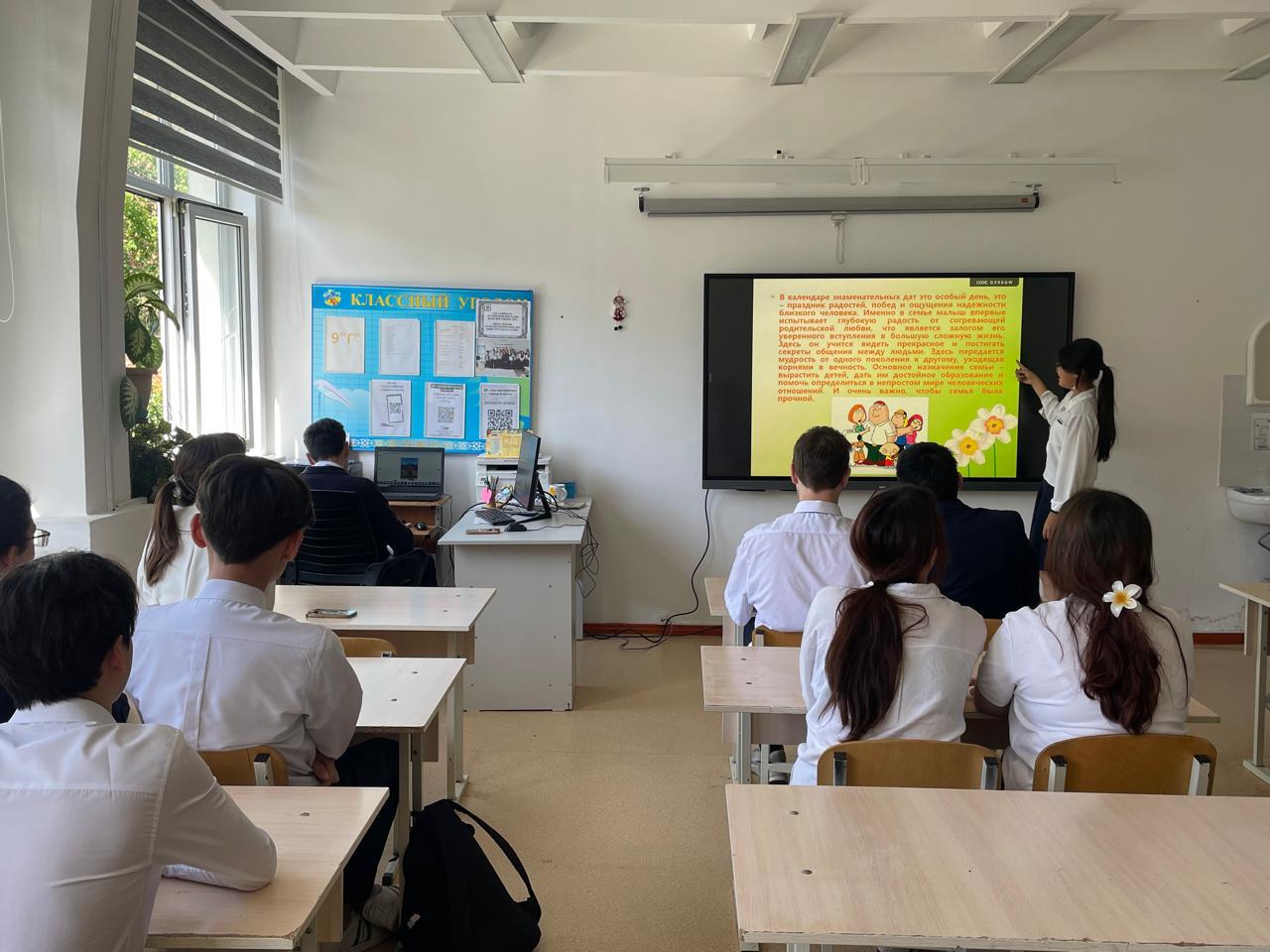 о важности уважительного отношения к своим родителям и особенно к матери. В ходе бесед и интерактивных заданий учащиеся узнали о традициях, которые передаются из поколения в поколение, о семейных праздниках, о том, как важно сохранять тепло семейных отношений, заботиться о близких и ценить своё родное окружение. Классные часы прошли в тёплой, доверительной атмосфере, способствующей развитию у учащихся чувства ответственности, любви и уважения к своей семье.