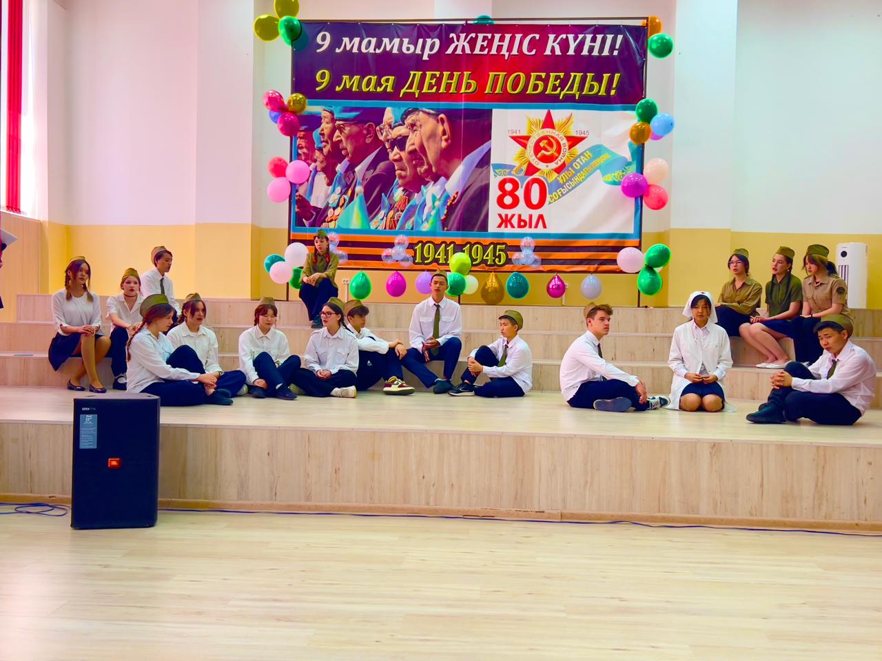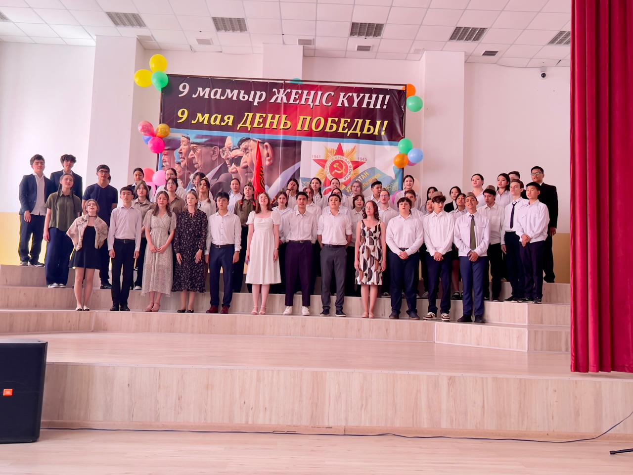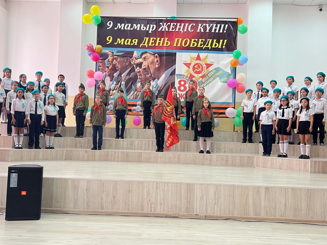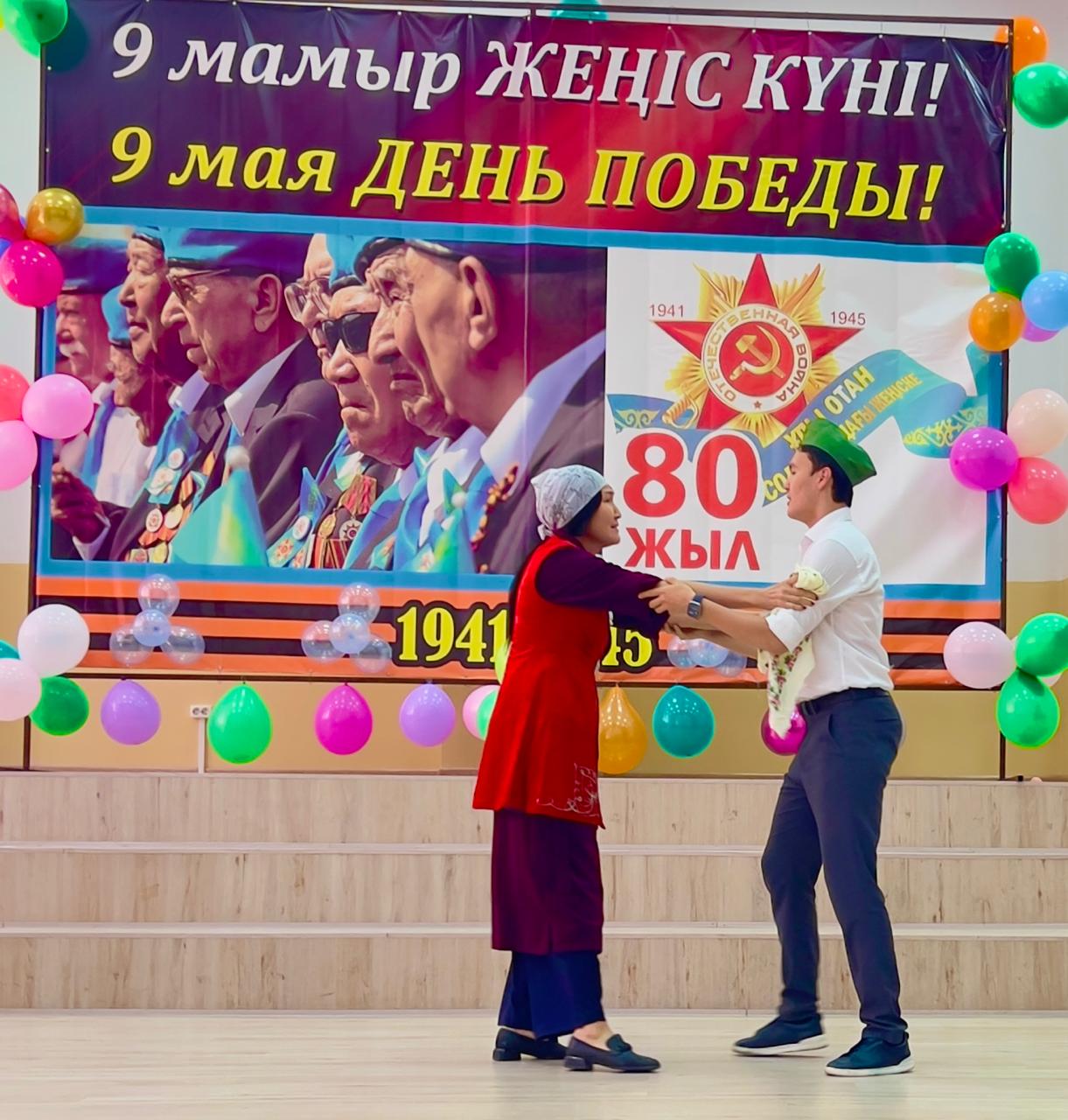 Гимназия директоры Наурызбаева Гульджамиля Каратаевна жиналғандарды Жеңіс мерекесімен құттықтап, баршаға зор денсаулық, бейбіт өмір, амандық және бізге азаттық сыйлаған жандарға жарқын естелік тіледі! Салтанатты құттықтаудан кейін көрермендер 1941–1945 жылдардағы соғыс жылдарының атмосферасына енді. Сахнада қоштасу белгісіндей болып, түлектер жеңіл вальс биледі. Бірінен кейін бірі көрермендердің көңілін толқытқан сахналар өтті: ана ұлын майданға шығарып салды, еріктілер алғы шепке аттанды, сарбаздар демалыс сәттерін өткізді. Алия Молдағұлованың ерлікпен қаза тапқаны жайлы қайғылы хабар сахнада айтылған сәт ерекше әсерлі болды. Сондай-ақ жас пионер-қаһармандардың ерлігі де назардан тыс қалмады. Блокадалық Ленинградтағы өмір көріністері мен «Ленинградтықтар, балаларым менің!» атты өлеңнің оқылуы көптеген көрермендердің жанарына жас үйірді. Көрермендер залында Ұлы Отан соғысында қаза тапқандарды бір минут үнсіздікпен еске алды. Іс-шара «Ұлы соғыс ардагерлеріне» және «Жеңіс күні» әндерінің орындалуымен аяқталып, көрермендердің ыстық ықыласына, шапалақ пен алғыс көз жасына бөленді. Бұл кеш халық ерлігіне деген құрмет, мақтаныш пен естеліктерге толы әсерлі әрі жарқын аяқталды!