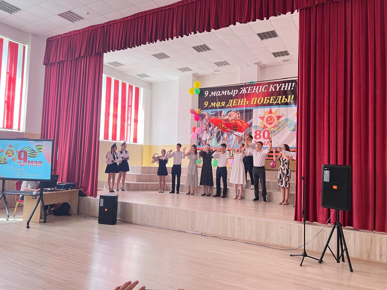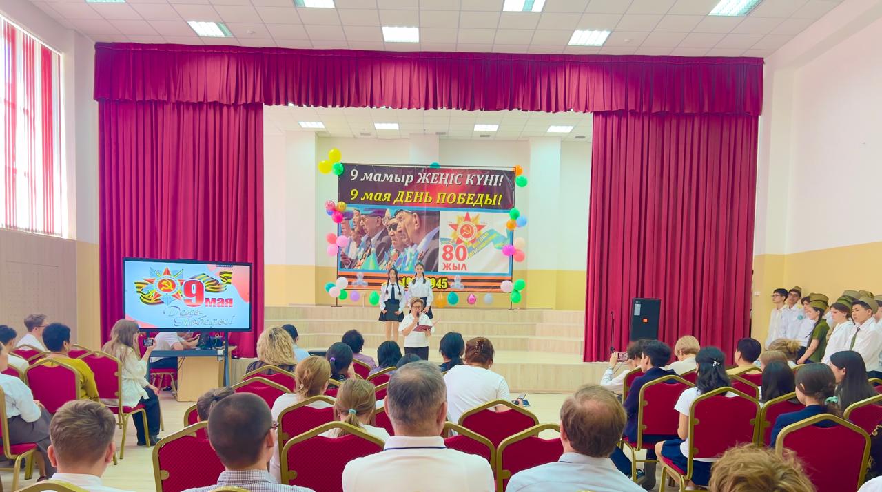 6.05.25 г в актовом зале гимназии состоялось торжественное мероприятие, приуроченное к 80-летию Победы в Великой Отечественной войне. Директор гимназии Наурызбаева Гульджамиля Каратаевна поздравила всех присутствующих с праздником Победы, пожелала всем здоровья, мира, благополучия и светлой памяти тем людям, кто подарил нам свободу! После торжественного поздравления зрители окунулись в атмосферу военных лет 1941–1945 годов. На сцене в праздничном вальсе кружились выпускники — как символ прощания перед уходом на фронт. Одну за другой сменяли трогательные сцены: мать провожала сына на войну, добровольцы отправлялись на передовую, солдаты отдыхали на привале. Особенно эмоциональным стал момент, когда на сцене прозвучала трагическая весть о гибели героини Алиии Молдагуловой. Не остались без внимания и подвиги юных пионеров-героев. Трогательные сцены из жизни блокадного Ленинграда и чтение стихотворения «Ленинградцы,дети мои!»вызвали слёзы у многих зрителей. Весь зал почтил память погибших в Великой Отечественной Войне минутой молчания. Завершилось мероприятие исполнением песен «Ветеранам Великой войны» и «День Победы», вызвавших бурю аплодисментов и слёзы благодарности. Это стало ярким финалом проникновенного вечера, наполненного памятью, гордостью и уважением к подвигу народа!