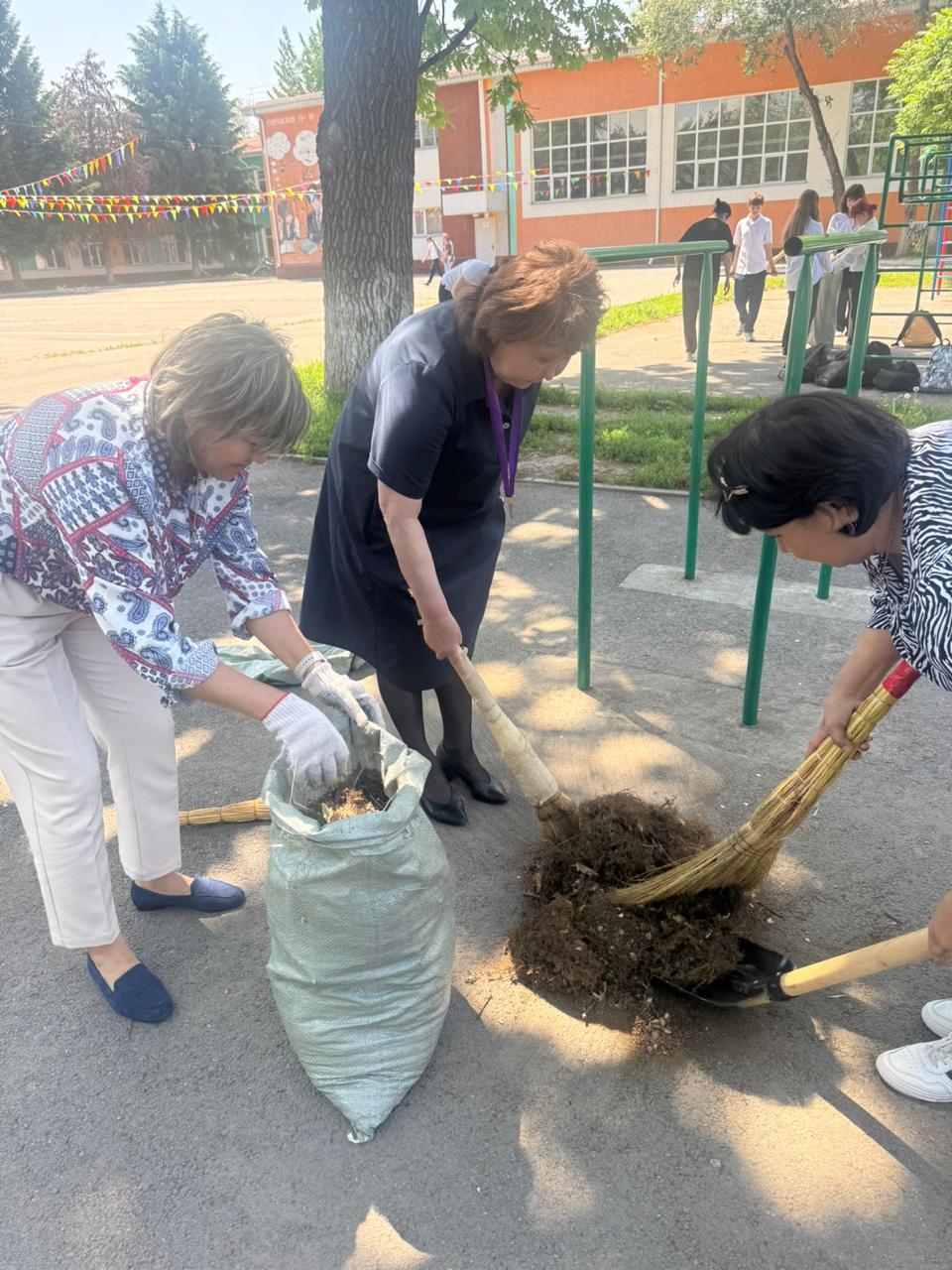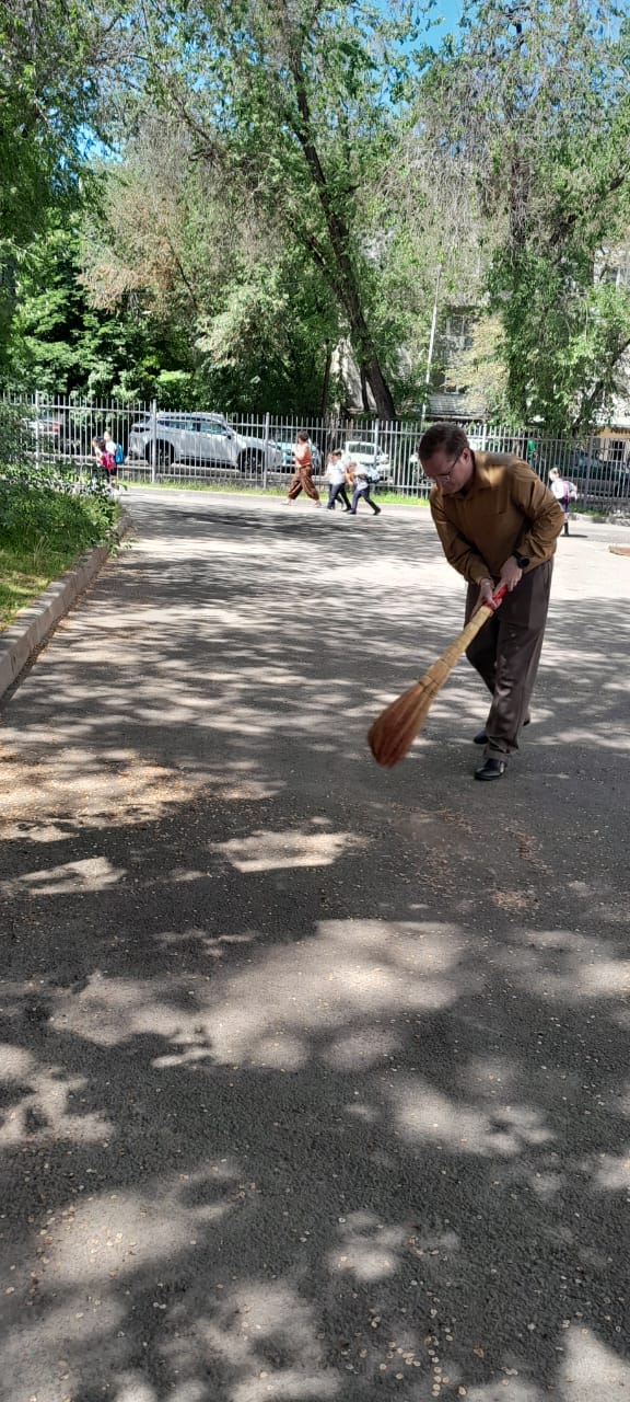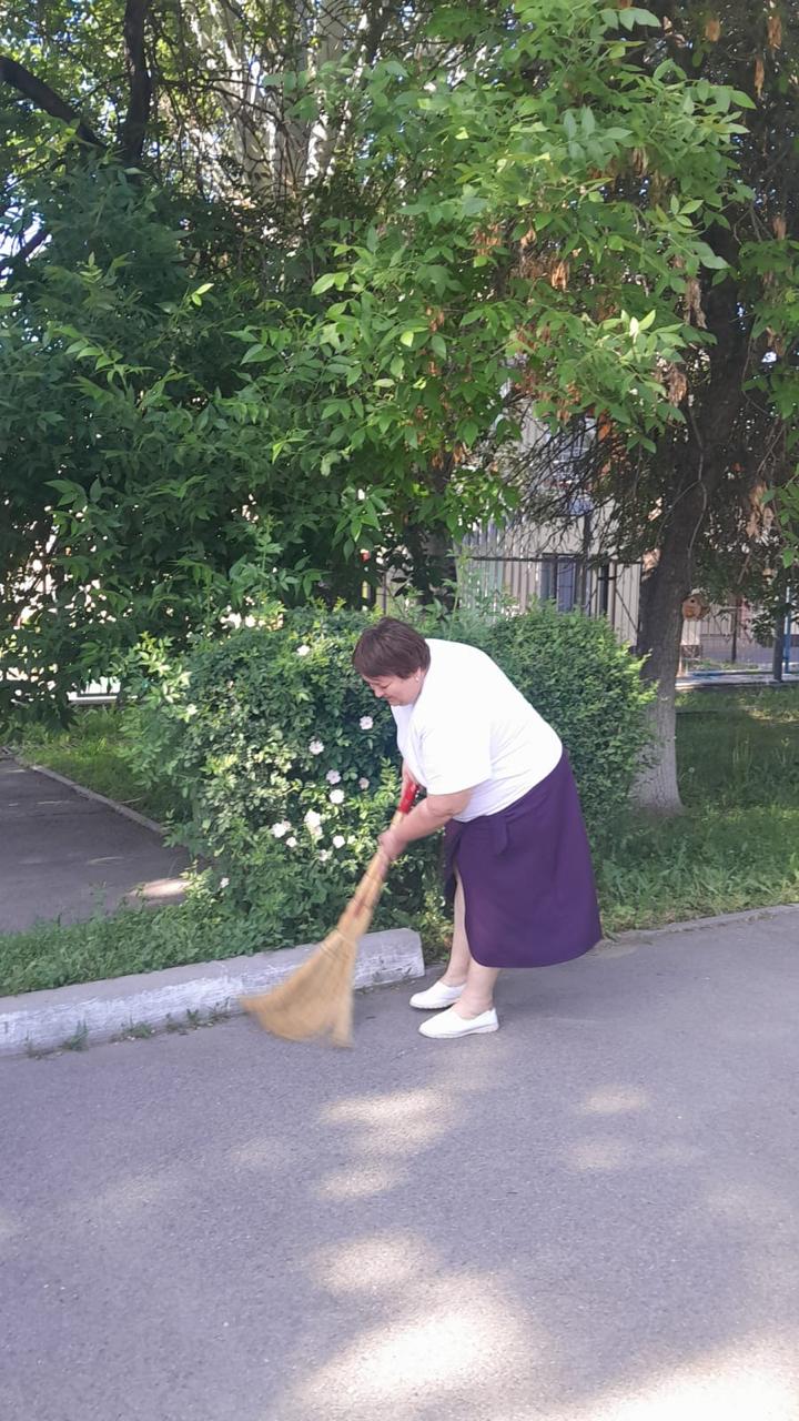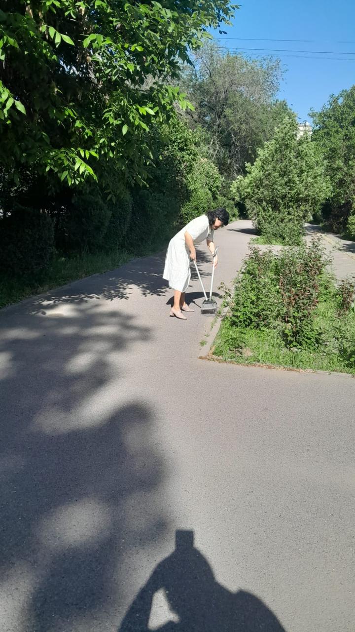 8 мамыр күні мұғалімдер ұжымы мен көмек көрсетуге ниет білдірген жоғарғы сынып оқушылары мектеп ауласына сенбілікке шықты. Олар қолдарына тырма, күрек және сыпырғыш алып, ауланы тазалауға кірісті. Жұмыс қызу жүріп, көп ұзамай аула тап-таза, жайлы күйге енді. Барлығы атқарылған жұмыс нәтижесіне риза болды.