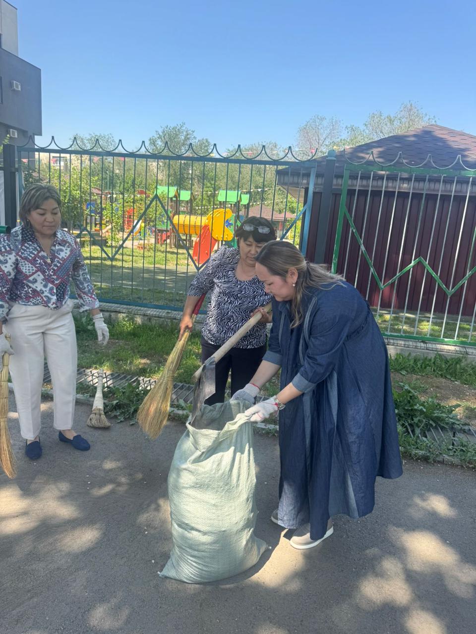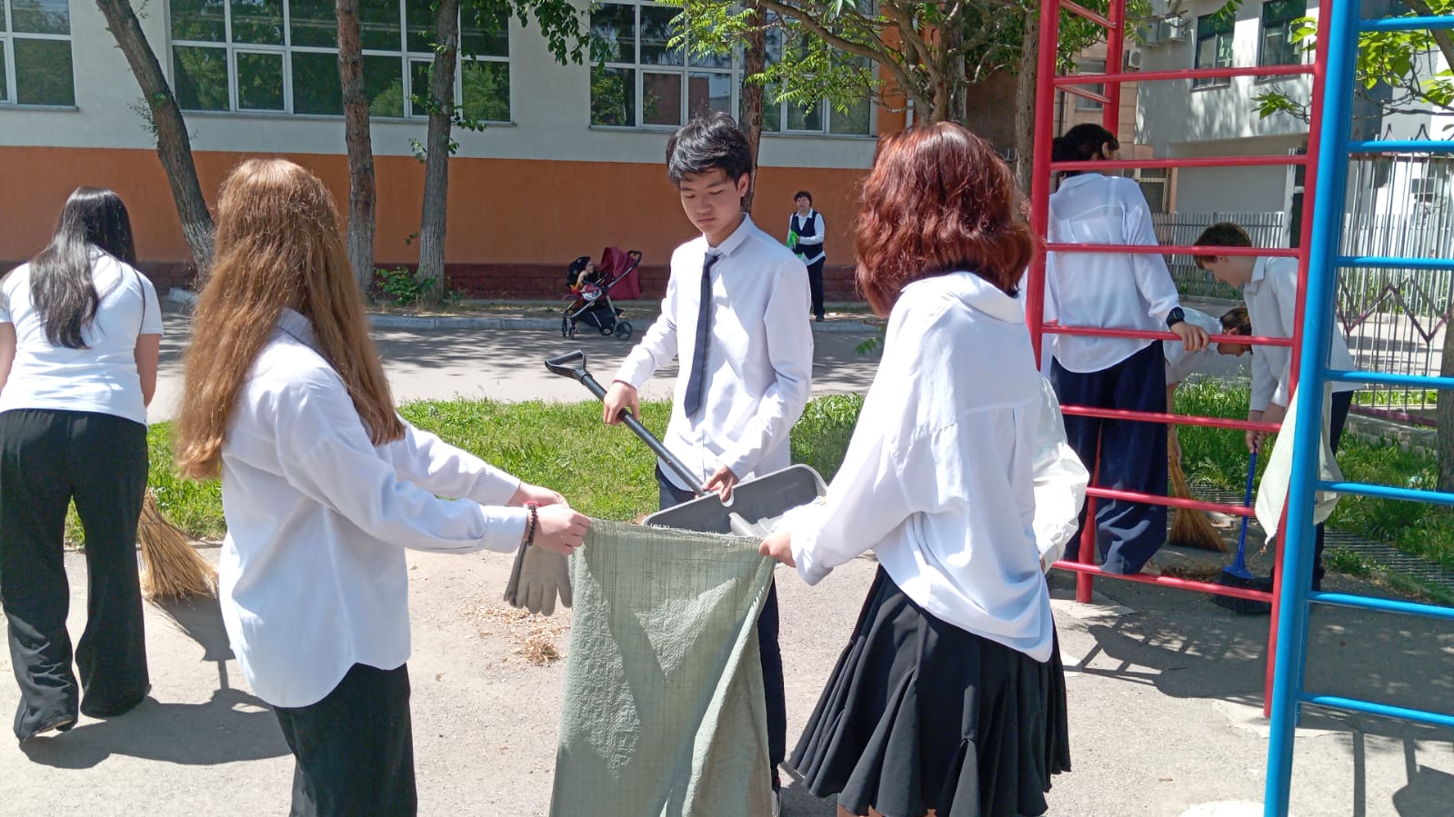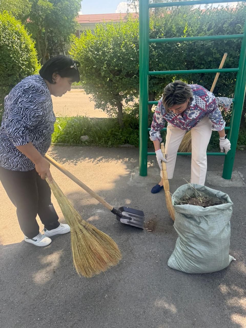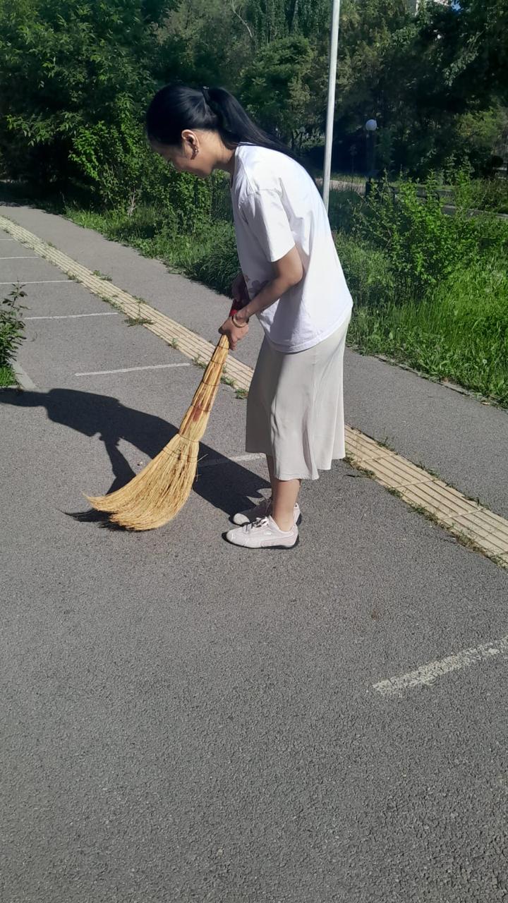 8 мамыр күні мұғалімдер ұжымы мен көмек көрсетуге ниет білдірген жоғарғы сынып оқушылары мектеп ауласына сенбілікке шықты. Олар қолдарына тырма, күрек және сыпырғыш алып, ауланы тазалауға кірісті. Жұмыс қызу жүріп, көп ұзамай аула тап-таза, жайлы күйге енді. Барлығы атқарылған жұмыс нәтижесіне риза болды.