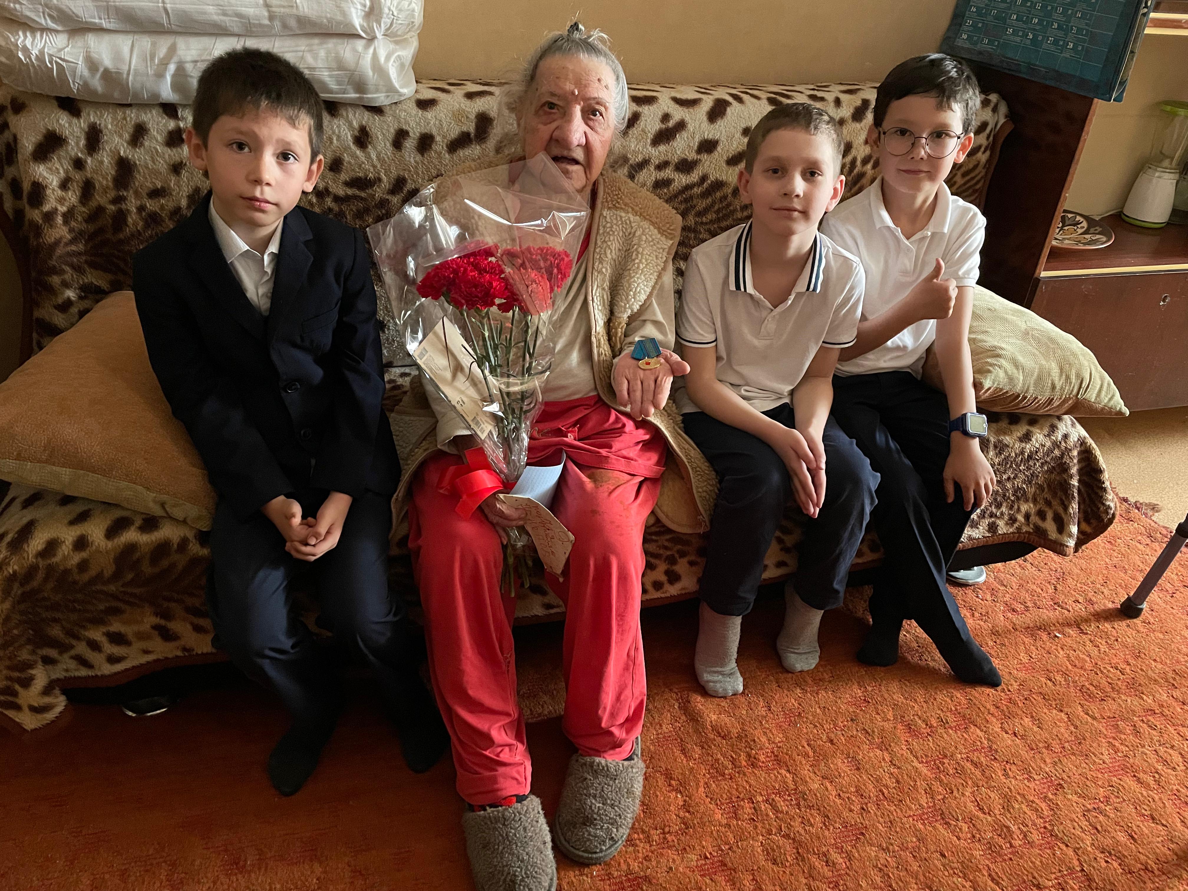 6 мая 2025 г. ученики 1 «Г» класса КГУ «Гимназия №18» поздравили ветерана Добронеженко Веру Дмитриевну с наступающим Днём Победы. Встреча прошла в теплой и дружественной атмосфере. Родители и классный руководитель Машанло С.Л. обратились к Вере Дмитриевне со словами благодарности за ее неоценимый вклад в Великую Победу. Были зачитаны поздравительные письма подготовленные детьми.
