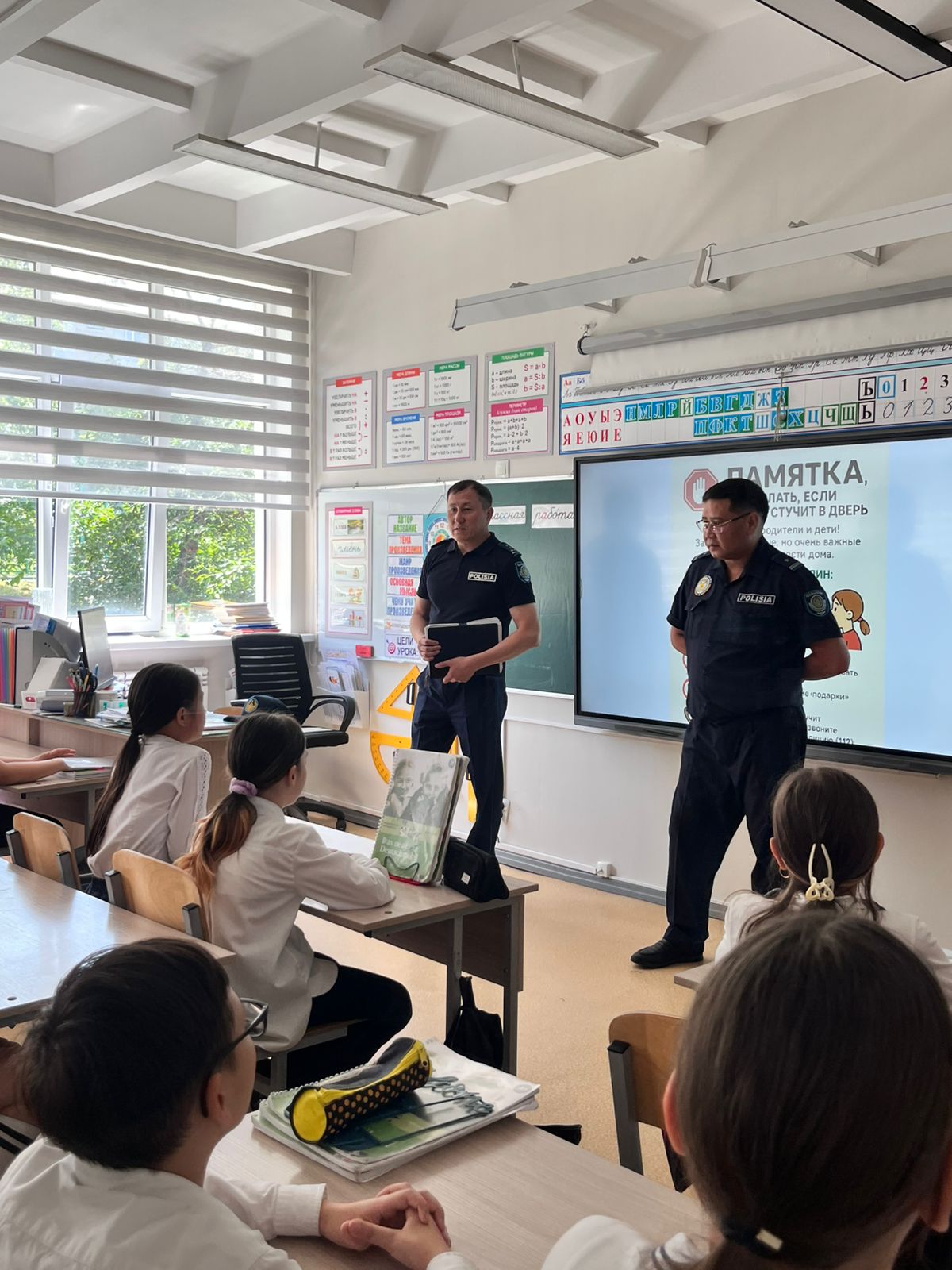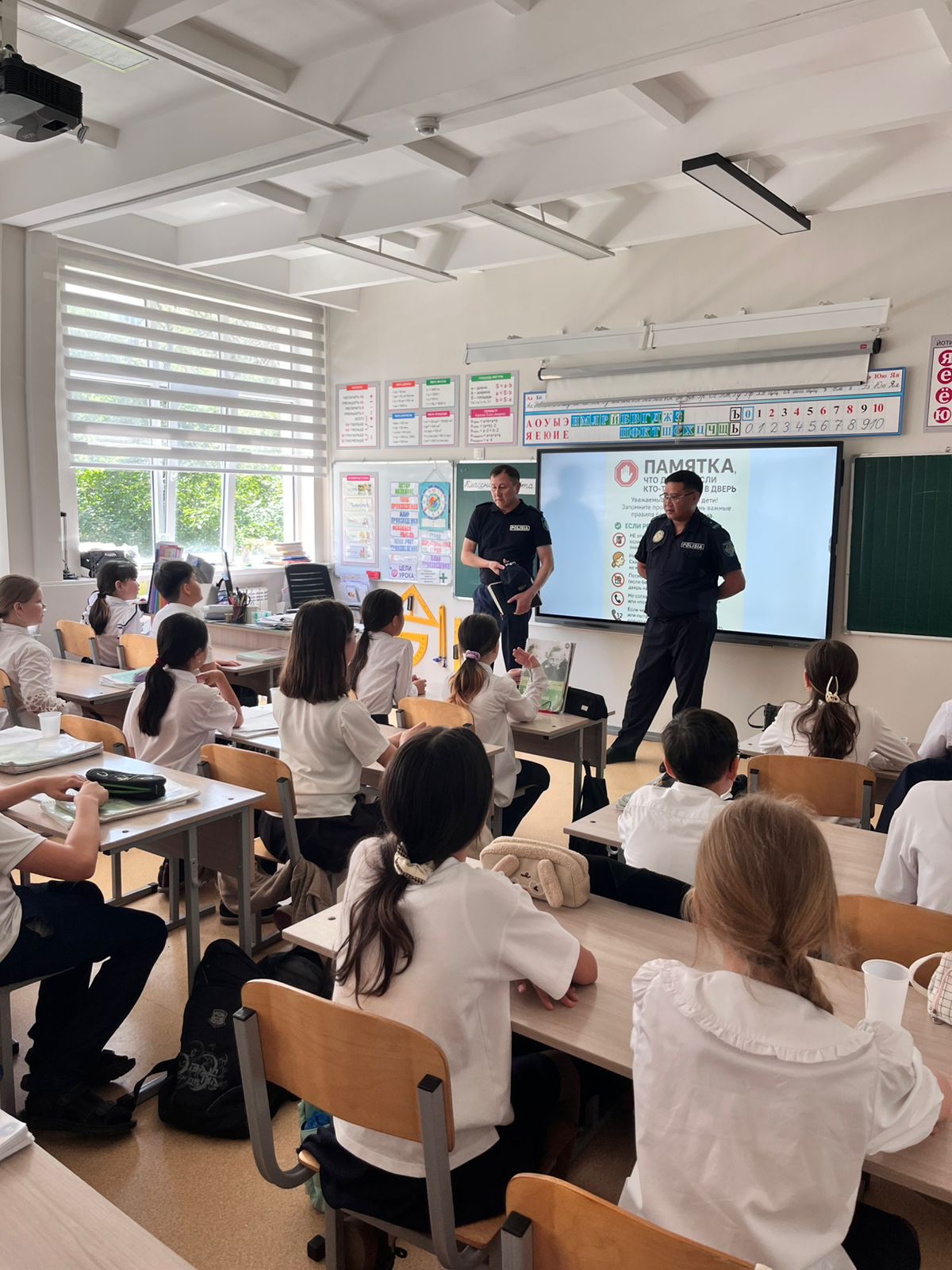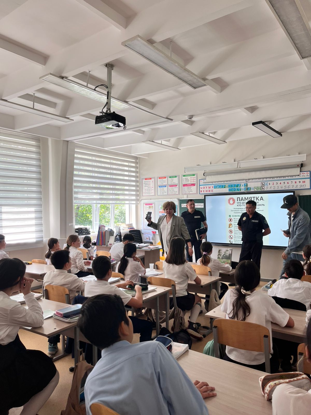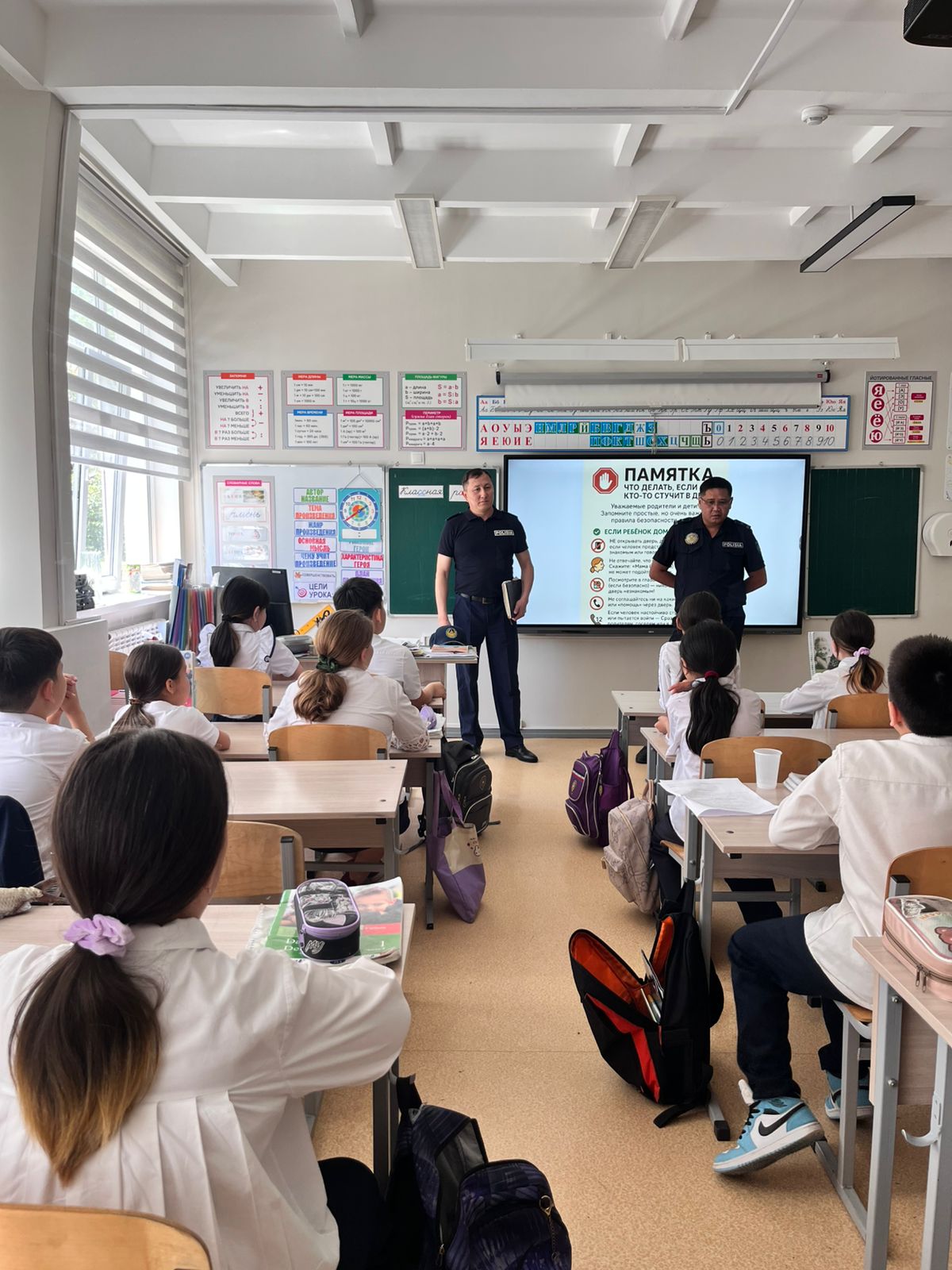 Сотрудники УАП — капитан полиции Нуртазаев Н. и майор полиции Каньязов А. А. — провели информативную и полезную беседу с обучающимися, напомнив о правилах дорожного движения, важности внимательности на дорогах и ответственности каждого участника дорожного движения. Мероприятие направлено на формирование у школьников культуры безопасного поведения на дорогах и снижение количества дорожно-транспортных происшествий с участием детей.