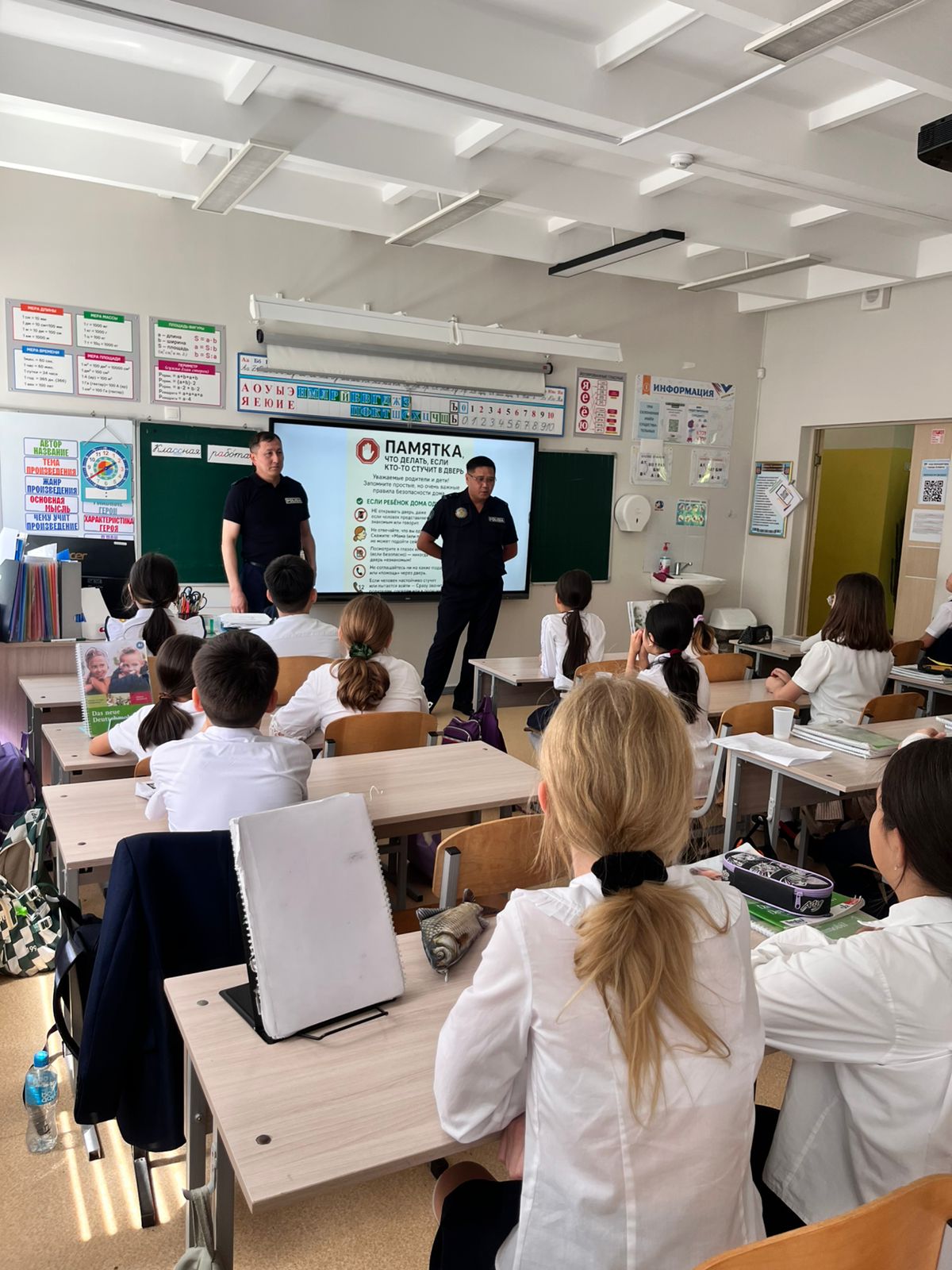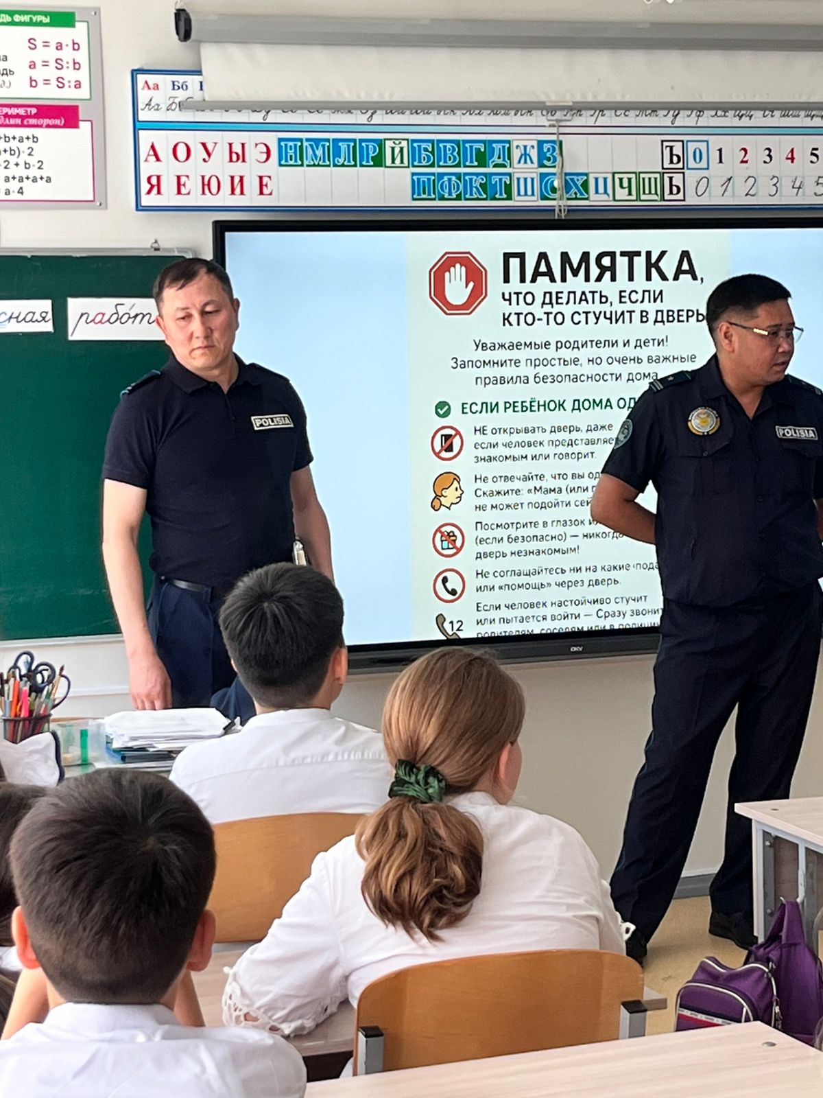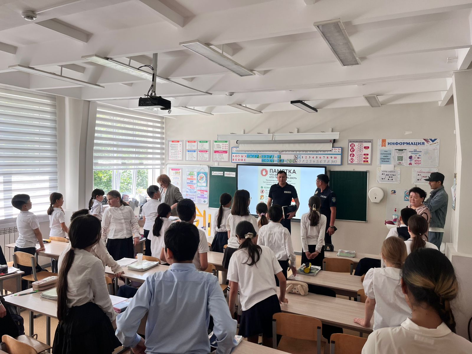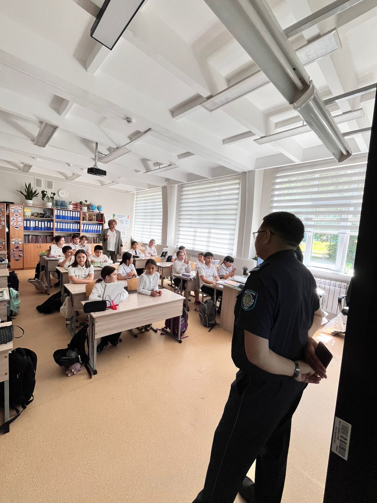Сотрудники УАП — капитан полиции Нуртазаев Н. и майор полиции Каньязов А. А. — провели информативную и полезную беседу с обучающимися, напомнив о правилах дорожного движения, важности внимательности на дорогах и ответственности каждого участника дорожного движения. Мероприятие направлено на формирование у школьников культуры безопасного поведения на дорогах и снижение количества дорожно-транспортных происшествий с участием детей.