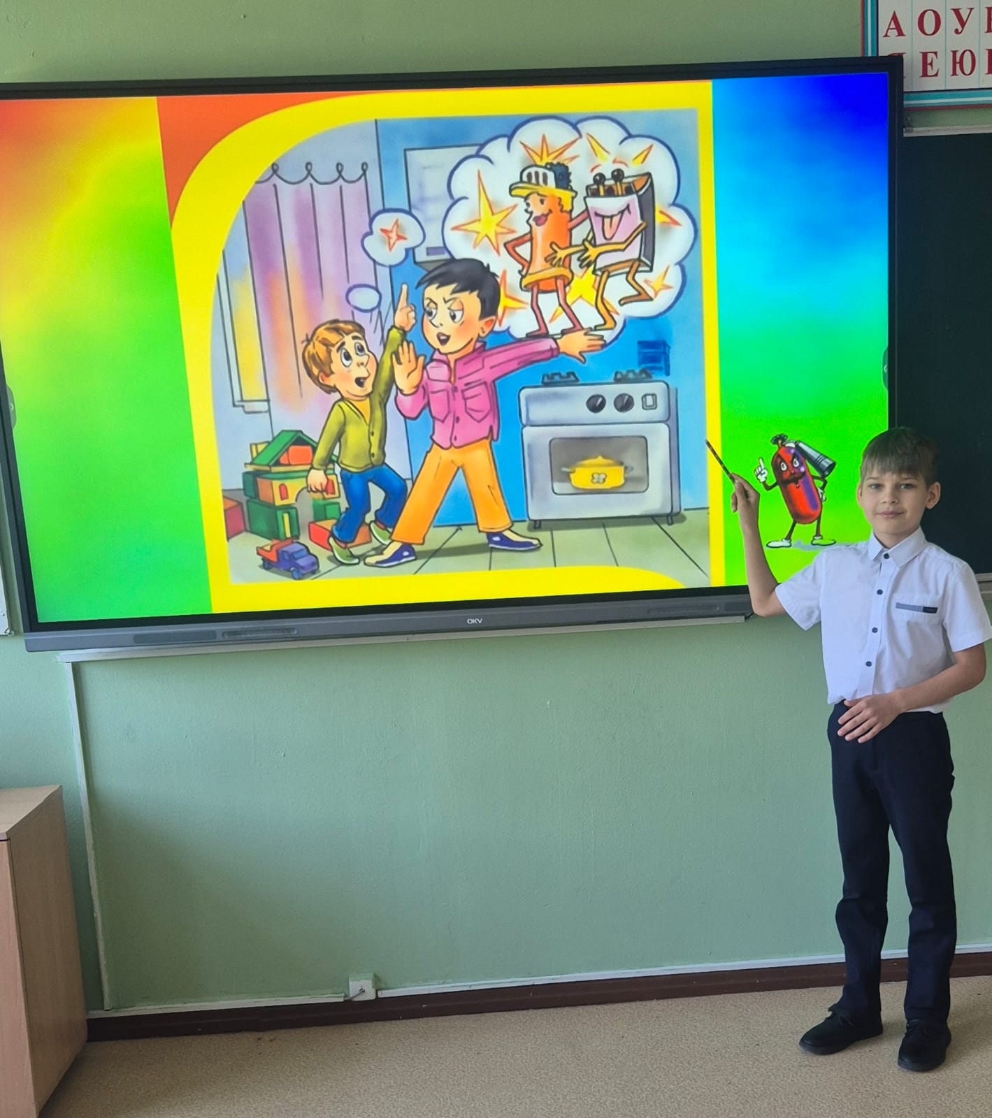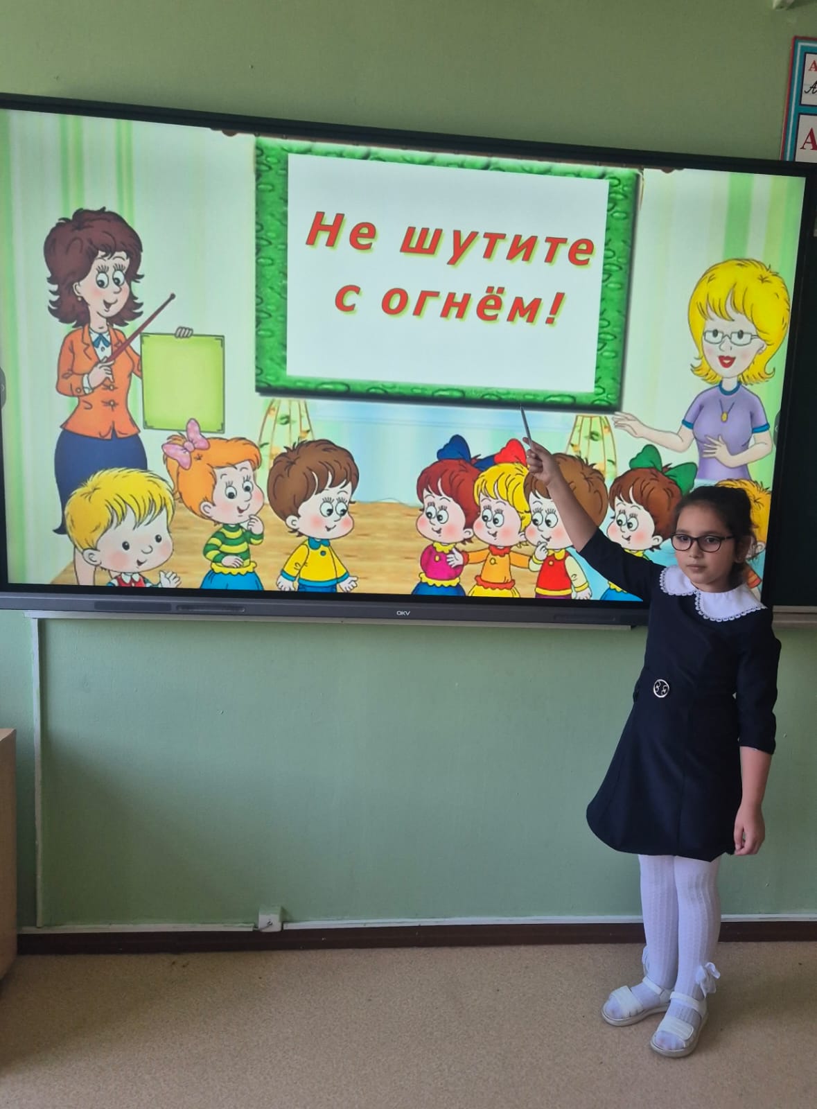 Ученики 2 д класса под руководством классного руководителя Жипкеловой С.К класса хорошо подготовились к мероприятию на тему: «Спасатели и пожарные – глазами детей». На начало конкурса стихов, ребята посмотрели видеоролик на тему: "Не шути с огнём". После просмотра дети обменялись мнениями, говорили о том как обезопасить себя и окружающих от пожара, какие надо предпринять действия, если вдруг случился пожар. После просмотра видеороликов, дети с выражением прочитали стихи и показали свое литературное чтение.