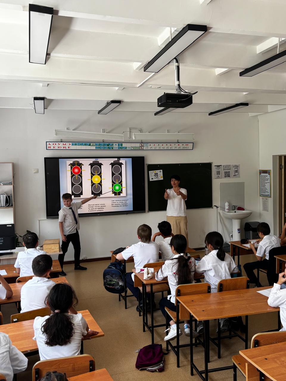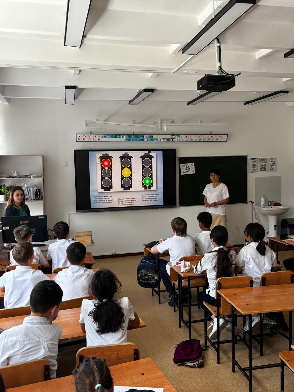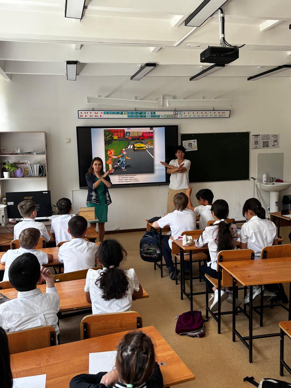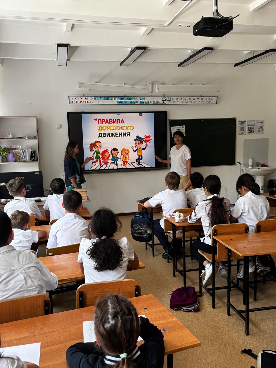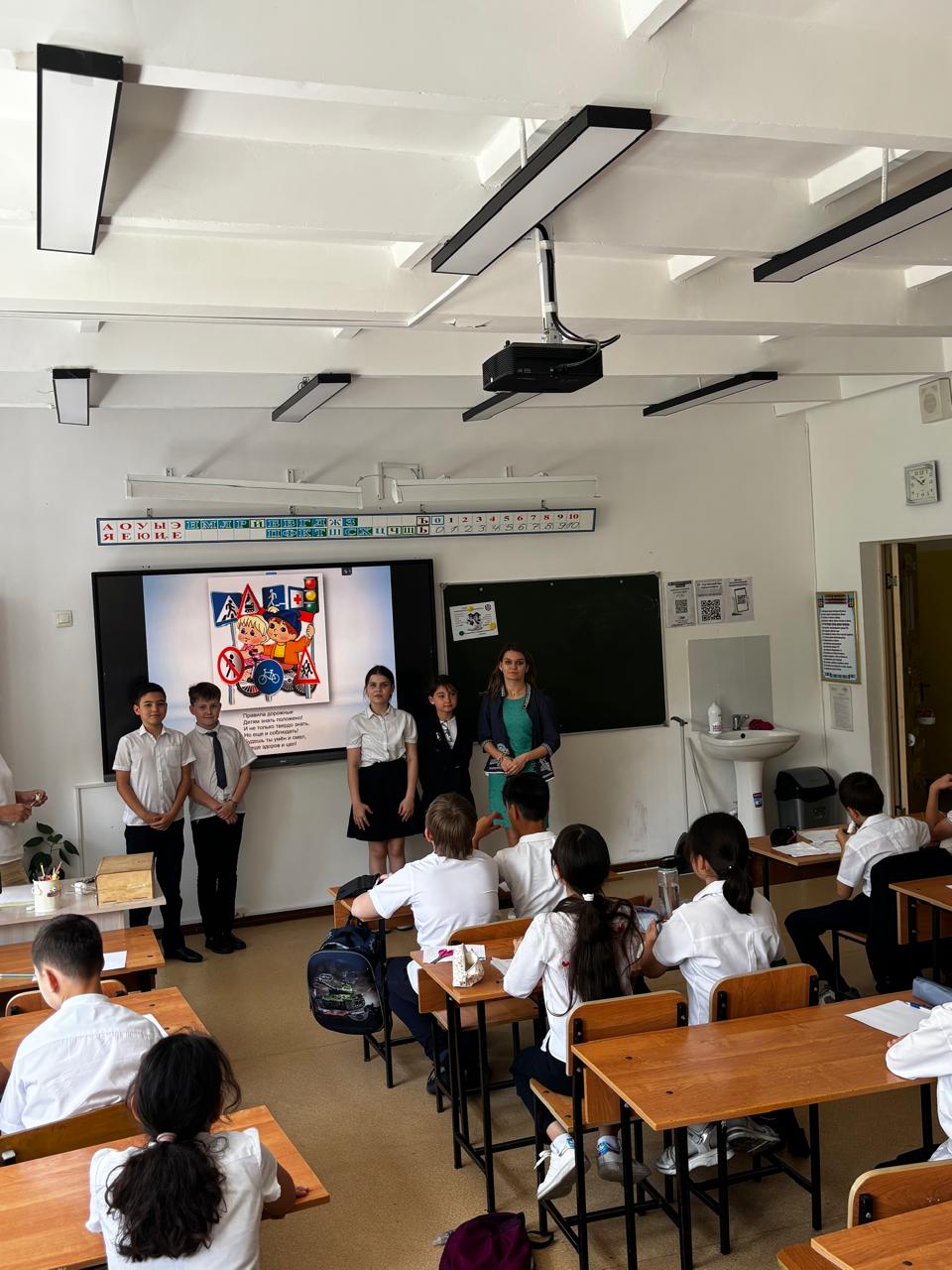 В КГУ «Гимназия №18» был проведен информационная беседа учителями начальных классов Задарожная С.В и информатики Таженовой Ж.С на тему: «Раздача информационного материала о правах и обязанностях детей, ПДД»