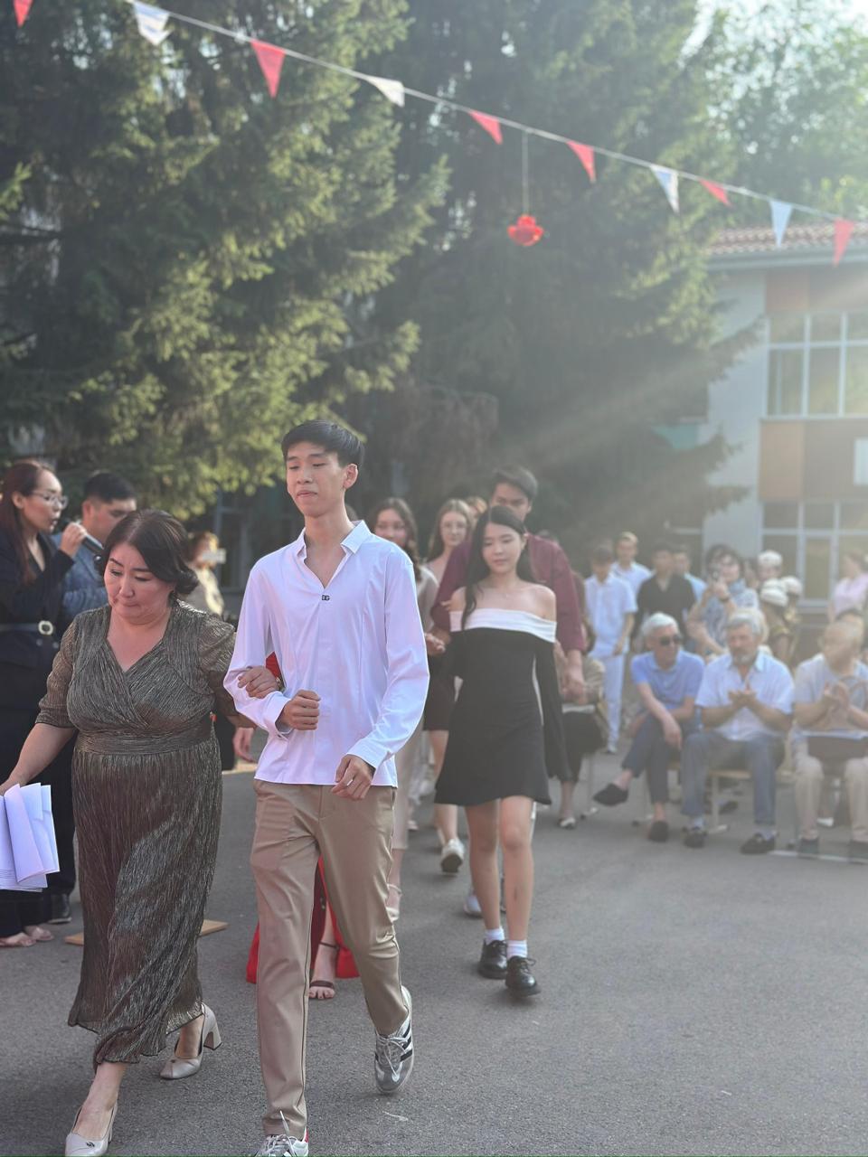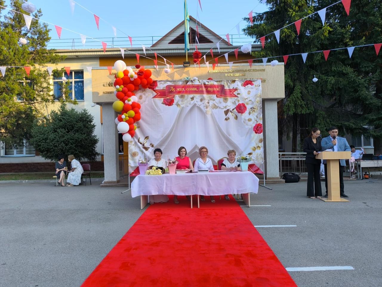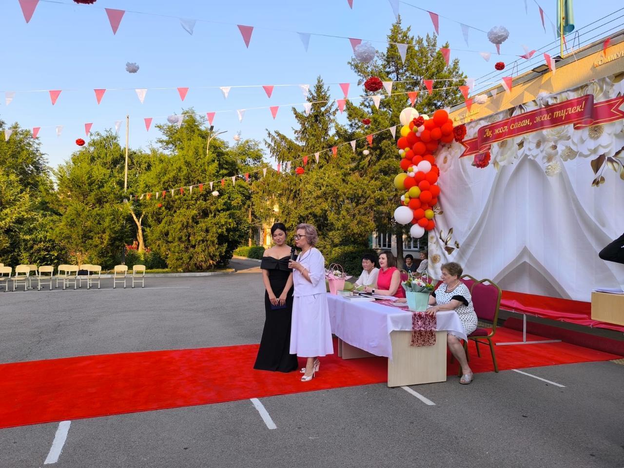Мұғалімдер, ата-аналар мен қонақтар мерекенің басты кейіпкерлері – түлектерді зор қошеметпен қарсы алды.