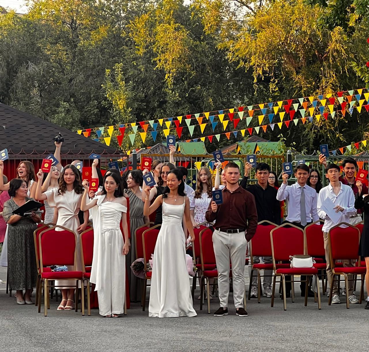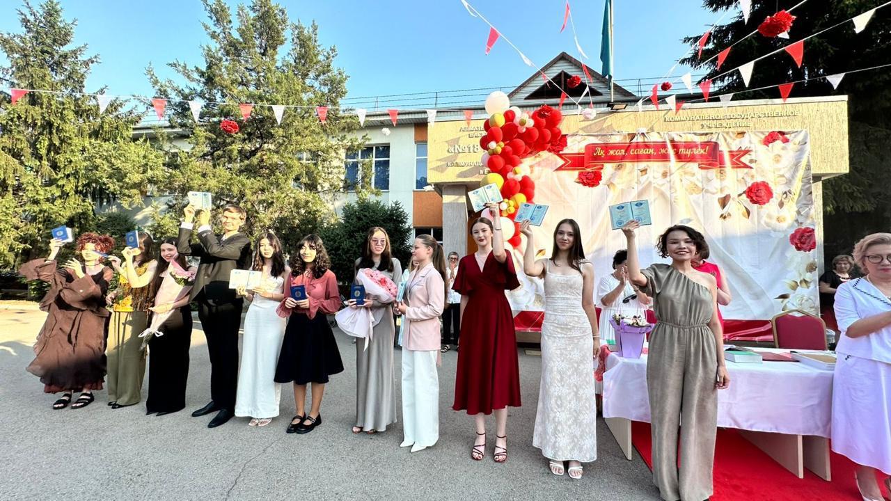 Біз барша түлектерді мектепті сәтті аяқтауларымен, өмірлеріндегі алғашқы білім құжатын алуларымен шын жүректен құттықтаймыз және жаңа биіктерді бағындыруларына тілектеспіз!