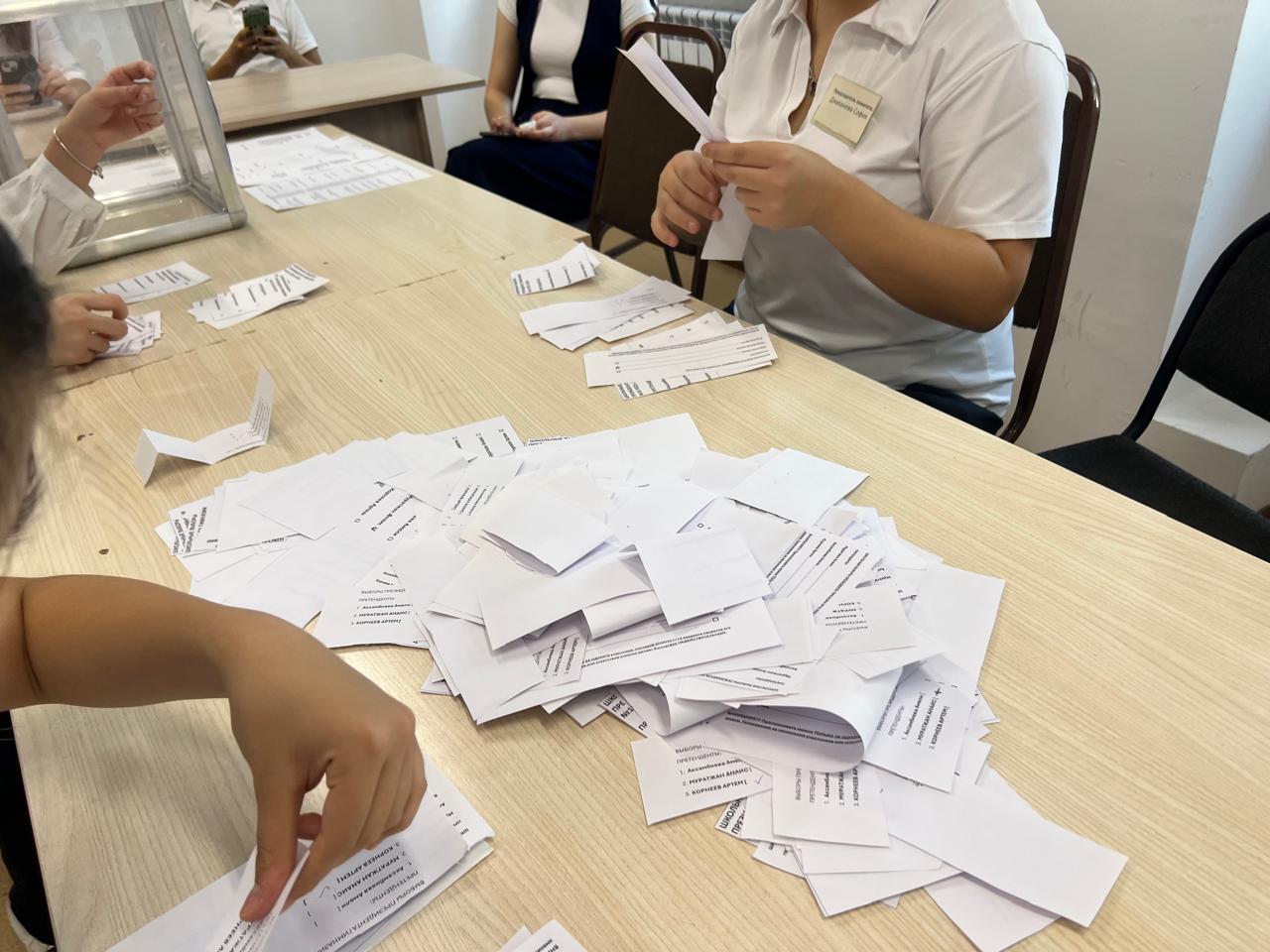 Дауыс беру аяқталғаннан кейін комиссия бақылаушылардың қатысуымен дауыстарды санады және нәтижелерді жариялады.