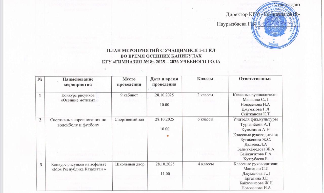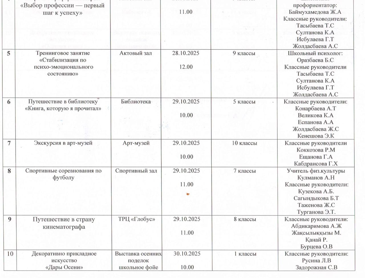 Күзгі каникул күндері гимназияда түрлі танымдық және спорттық іс-шаралар өткізіледі. Барлық оқушыларды белсенді қатысуға шақырамыз!