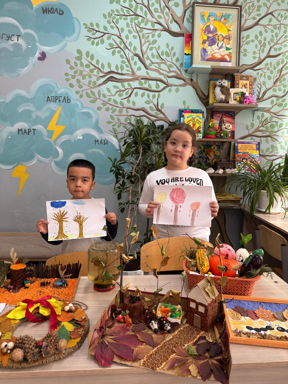 Балалар шығармашылық қабілеттерін танытып, күз табиғатының әсемдігін бейнелеп, түрлі көркемдік тәсілдерді қолданды.