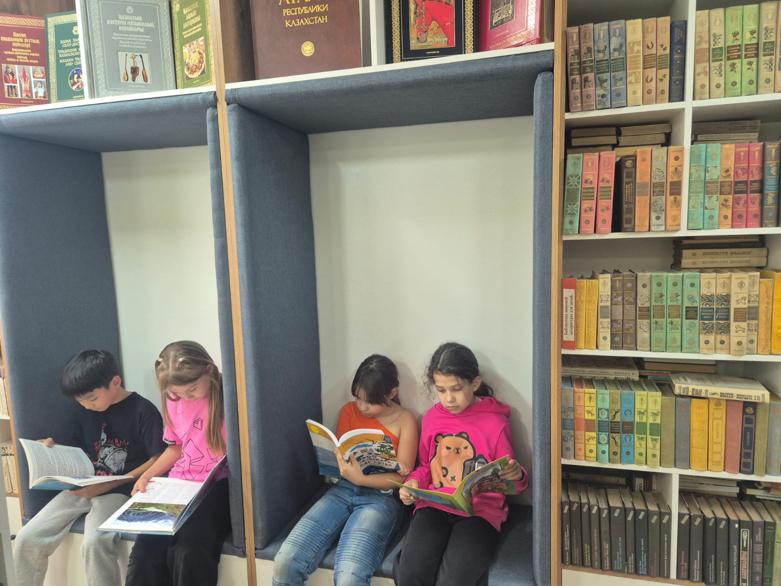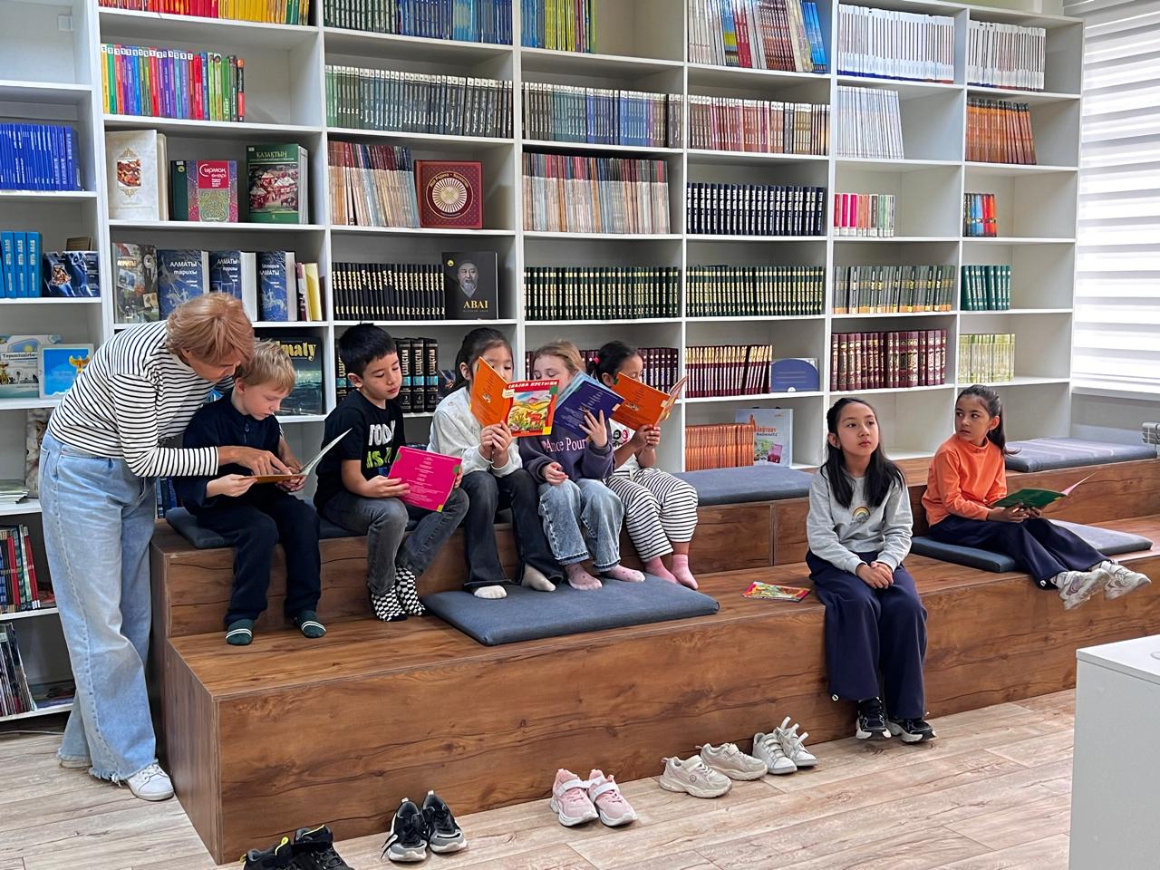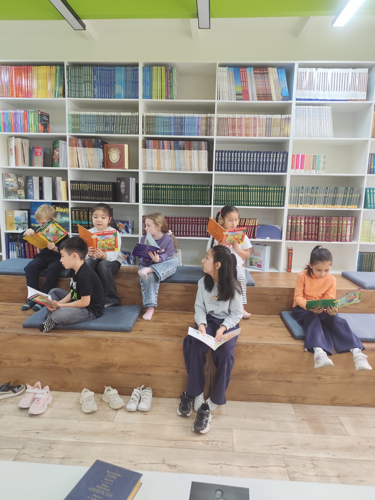 Балалар үлкен қызығушылықпен таңдаған шығармаларын дауыстап оқып, талқылауларға белсенді қатысып, кітапханада ұсынылған басқа да балалар әдебиеттерімен танысты.