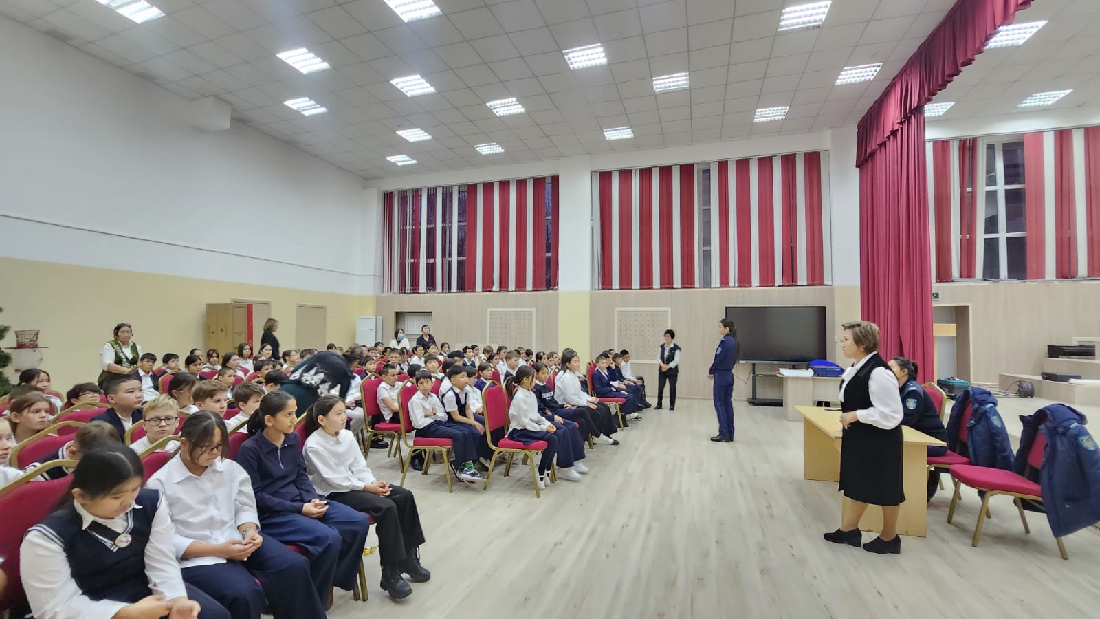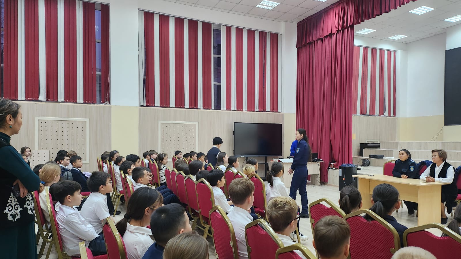 15.12.2025 года в актовом зале гимназии с учащимися 5-х классов была проведена профилактическая беседа по предупреждению буллинга и кибербуллинга. В мероприятии приняли участие директор Наурызбаева Г.К, завуч по ВР МартыненкоМ.Я, Таджиякова Г.А., классные руководители Великова К.А, Еспанова А.А, Конырбаева А.Т., Кенешева Э.К., Жолдысбаева Ж.С., а также сотрудники правоохранительных органов старший инспектор ОЮП ООБ майор полиции Алмалинского района Бисенова З.Н., инспектора Симова М.О. и подполковник полиции Сарманова А.Ж.
