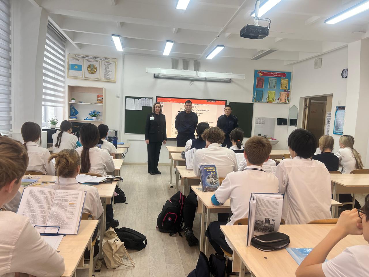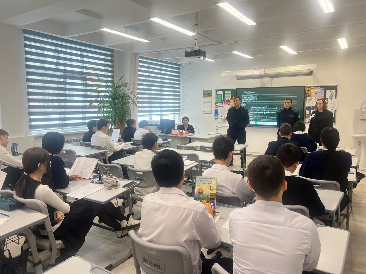 10.12.2025 года для учащихся 8-х классов была проведена беседа по безопасному использованию пиротехнических изделий. Лекцию провели старший лейтенант полиции УИ ОЮП ОМПС Алмалинского района Заурбеков А. и капитан полиции Халидинов Н.