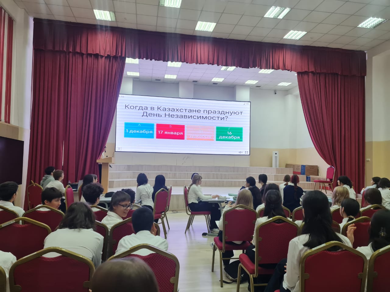 17 декабря 2025 года в в КГУ «Гимназия №18» состоялась увлекательная интеллектуальная игра под названием "Казахстан: вчера, сегодня, завтра". Мероприятие собрало учащихся 8-х классов, которые проявили свои знания и командный дух в дружеской атмосфере.