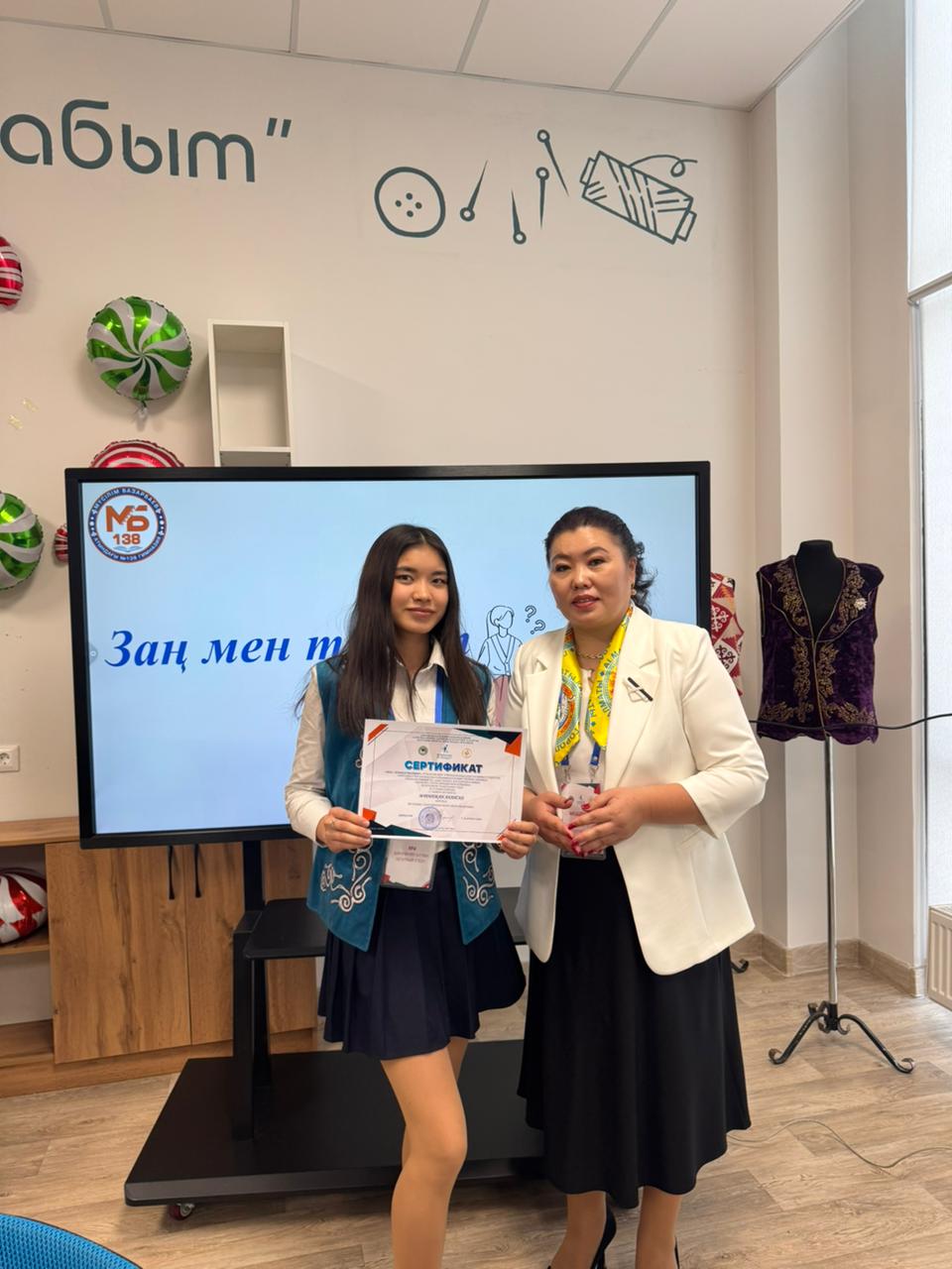 23.12.2025 г. президент школьного парламента, ученица 11 «В» класса Муратжан Анаис, приняла участие в Городском слёте лидеров школьных и студенческих парламентов «Я — лидер!», где представляла Алмалинский район и входила в состав команды лидеров района.