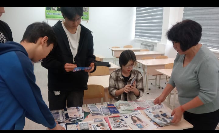 05.01.26. 9Б сынып оқушыларымен "Менің болашақ мамандығым"тақырыбында кәсіптік бағдар беру жұмыстары жүргізілді. 9-сынып оқушыларымен кәсіптік бағдар беру жұмысы маңызды кезеңдердің бірі болып табылады , өйткені дәл осы жаста оқушылар 10-сыныпта оқуды жалғастыру немесе колледжге түсу туралы шешім қабылдайды, оқушыларға буклеттерде де ,ақпарат түрінде де әртүрлі колледждер берілді. колледжге түсу ережелері.