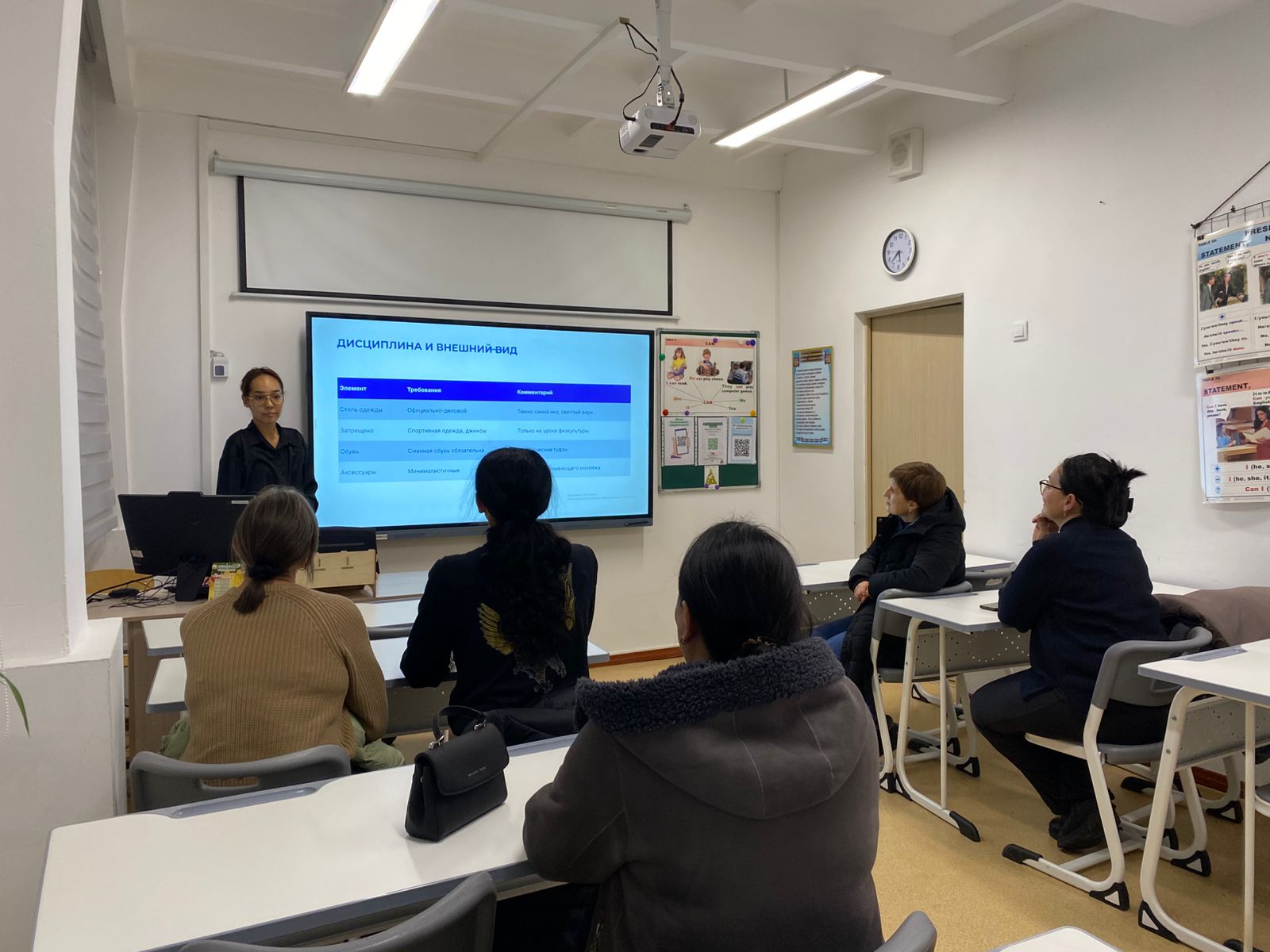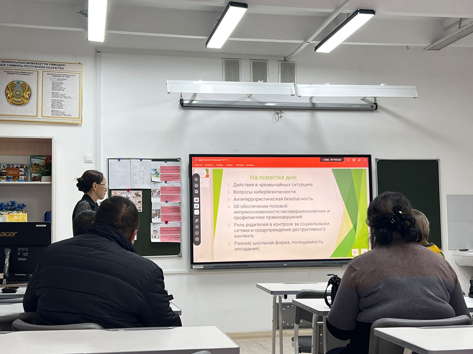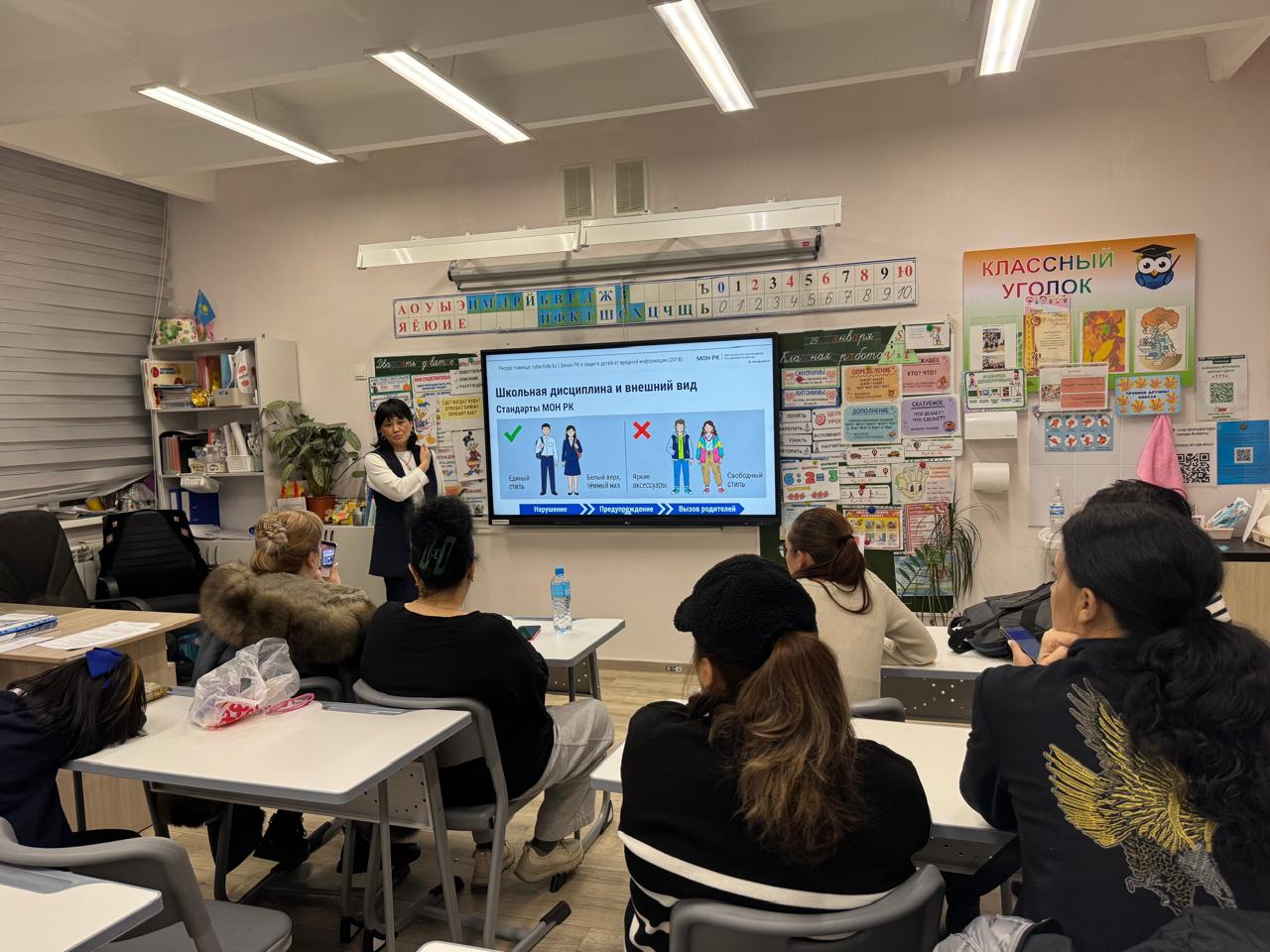 «Әртүрлі мәселелер» бөлімінде сабаққа қатысу, оқушылардың кешігіп келуі, мектеп формасына қойылатын талаптарды және мектептің ішкі тәртіп ережелерін сақтау мәселелері талқыланды.
