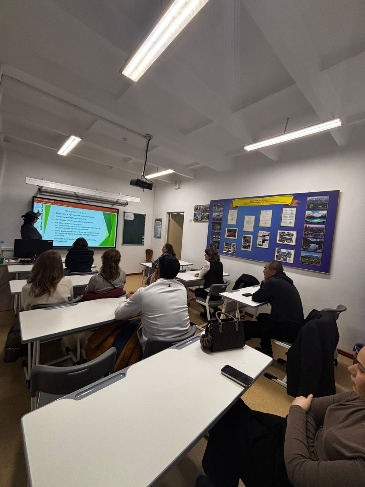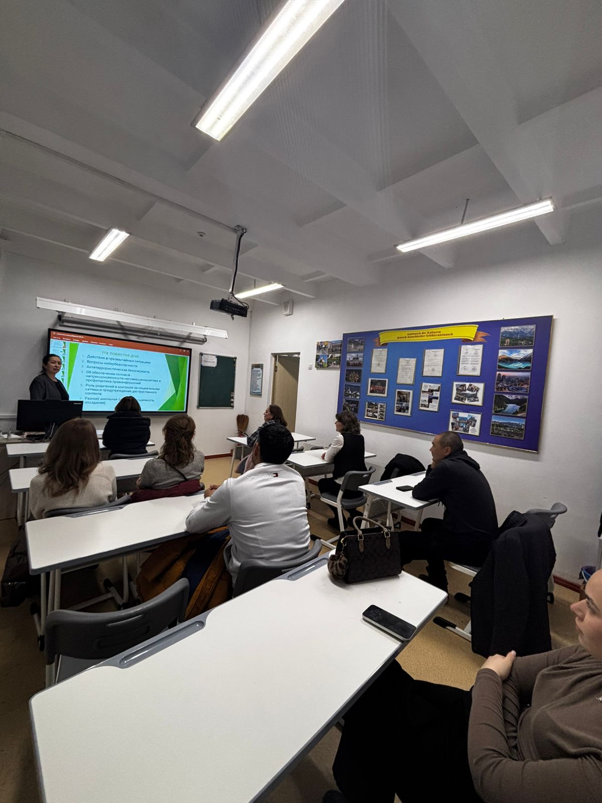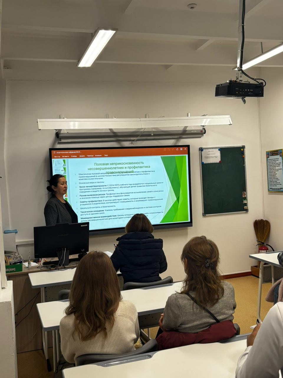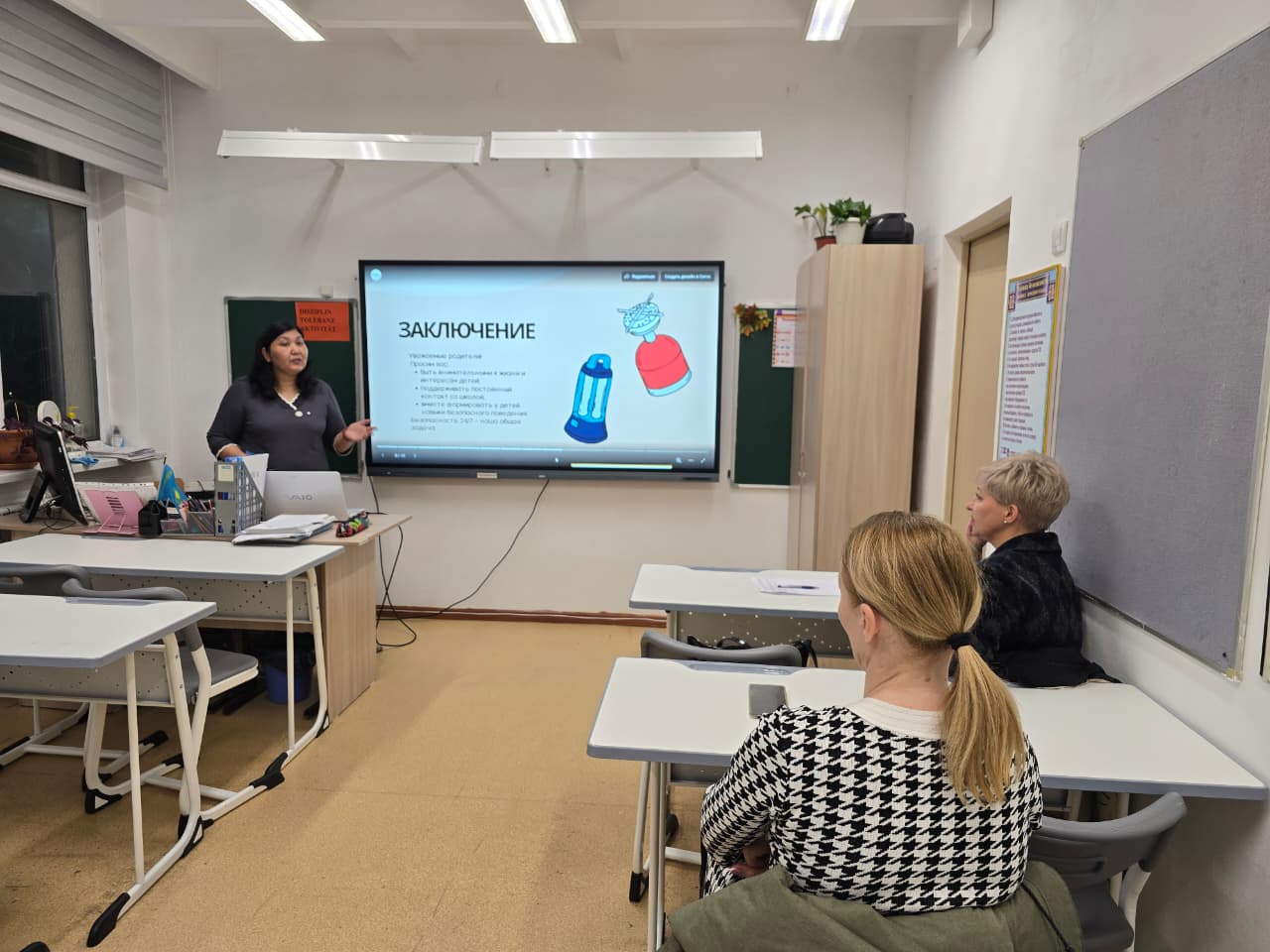 «Әртүрлі мәселелер» бөлімінде сабаққа қатысу, оқушылардың кешігіп келуі, мектеп формасына қойылатын талаптарды және мектептің ішкі тәртіп ережелерін сақтау мәселелері талқыланды.