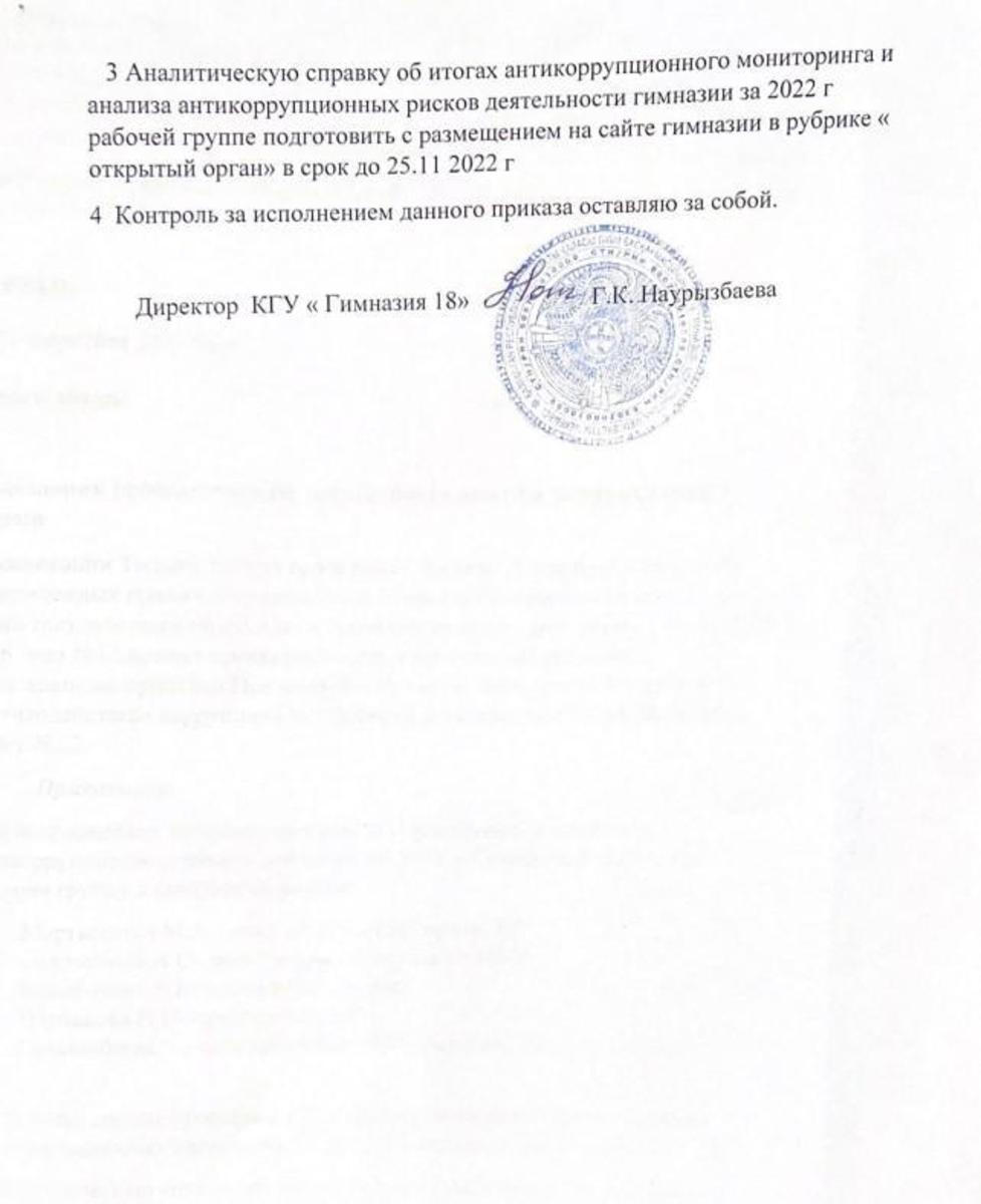 Аналитическая справка по итогам внутреннего анализа коррупционных рисков КГУ "Гимназия №18" Управление образования г.Алматы