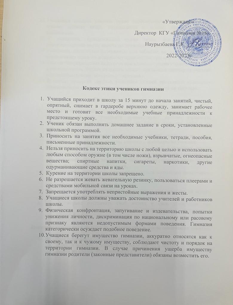 Кодекс этики КГУ "Гимназия №18"