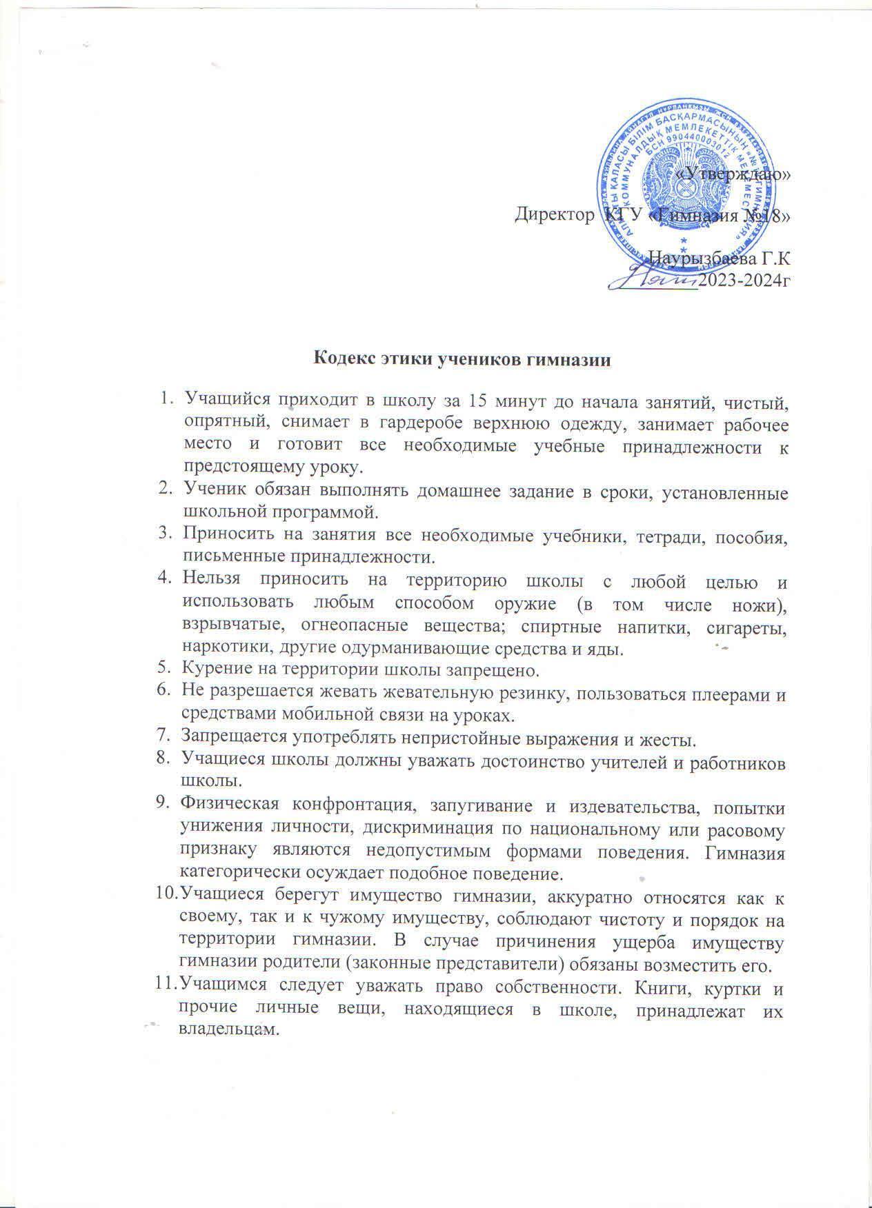 20 қараша 2023 0 1 2 3 4 5 Білім алушылардың (оқушылардың) этикалық Кодексі Осы беттің QR-коды:QR-код этой страницы: