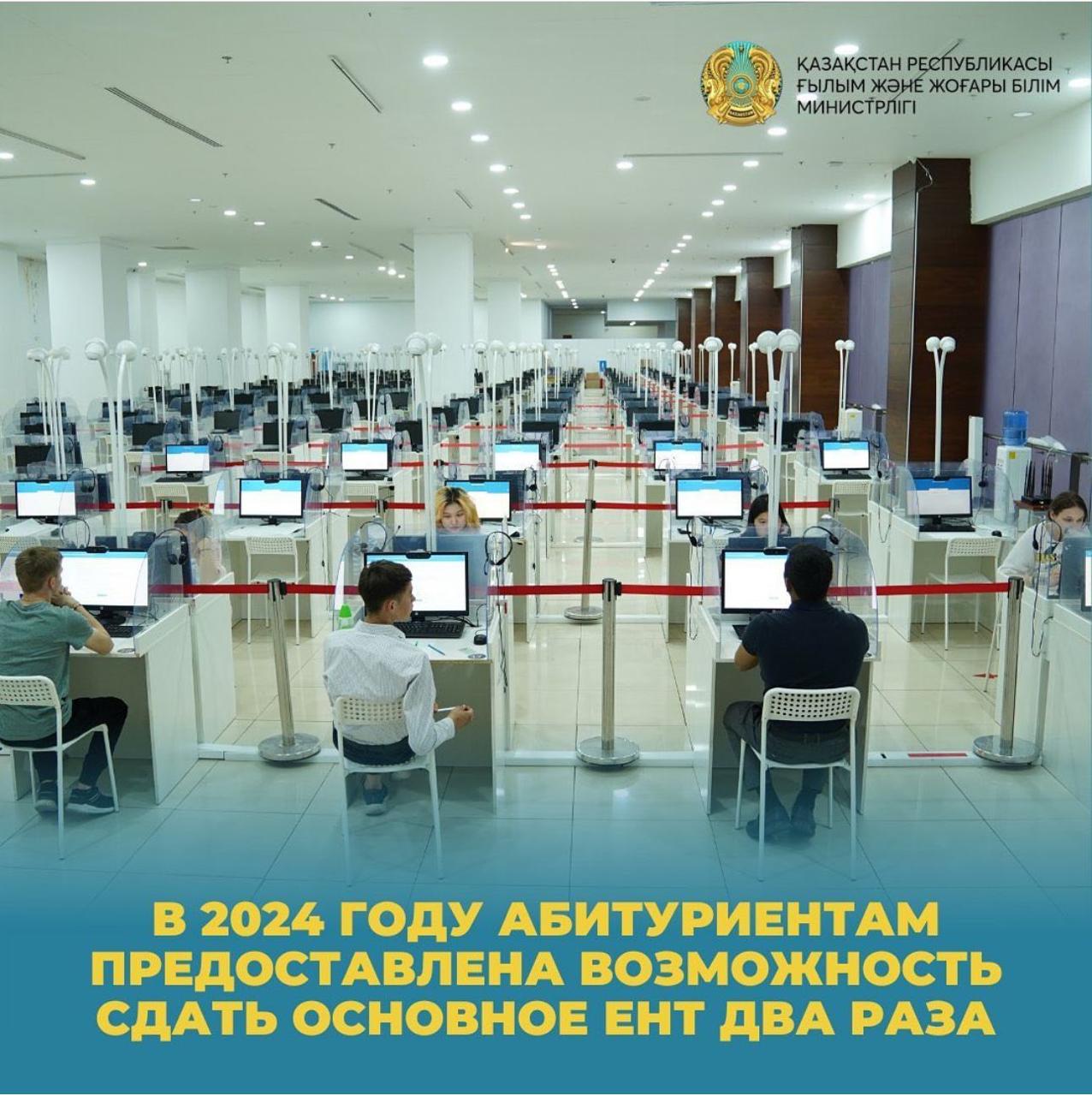По решению Министерства науки и высшего образования РК в 2024 году всем абитуриентам будет предоставлена возможность сдать основное Единое национальное тестирование два раза и принять участие в конкурсе для присуждения грантов с лучшим результатом. Данная норма была закреплена в прошлом году.
