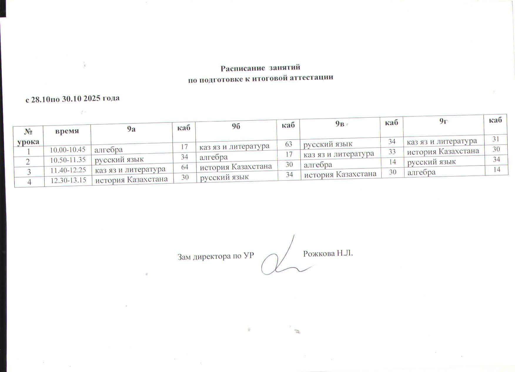 Сабақ кестесі