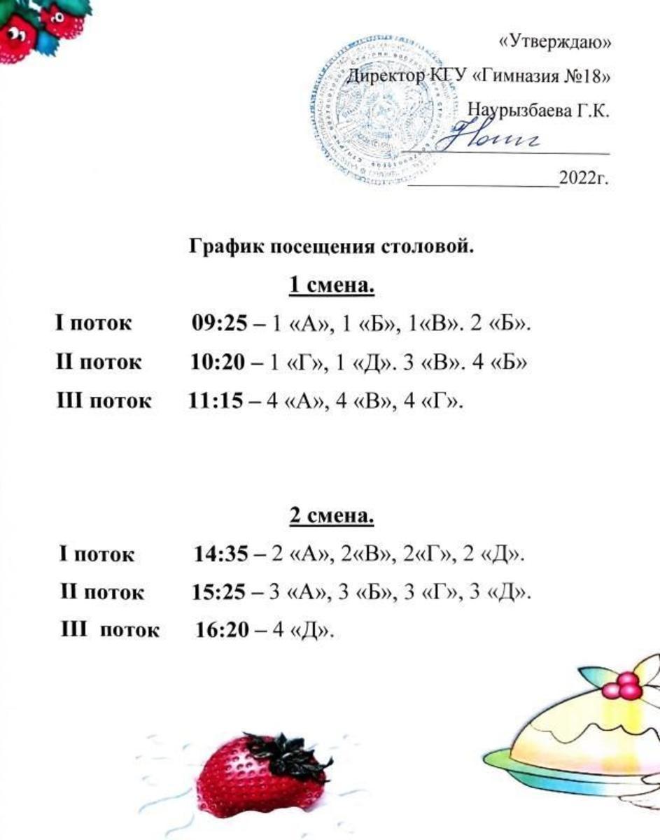 Асханаға бару кестесі