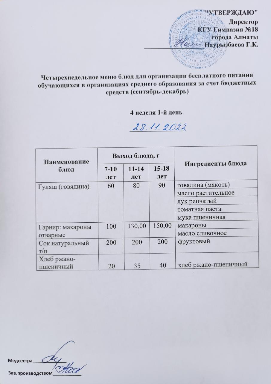28 қараша 2022 0 1 2 3 4 5 Оқушыларға тегін берілетін тағамдардың мәзірі (қыркүйек-желтоқсан) 4 апта 1 күні Жалпыға бірдей білім беру қоры есебінен тегін тамақтанатын оқушыларға арналған 4 апталық ас мәзірі (қыркүйек-желтоқсан)4апта 1-ші күн Осы беттің QR-коды:QR-код этой страницы: