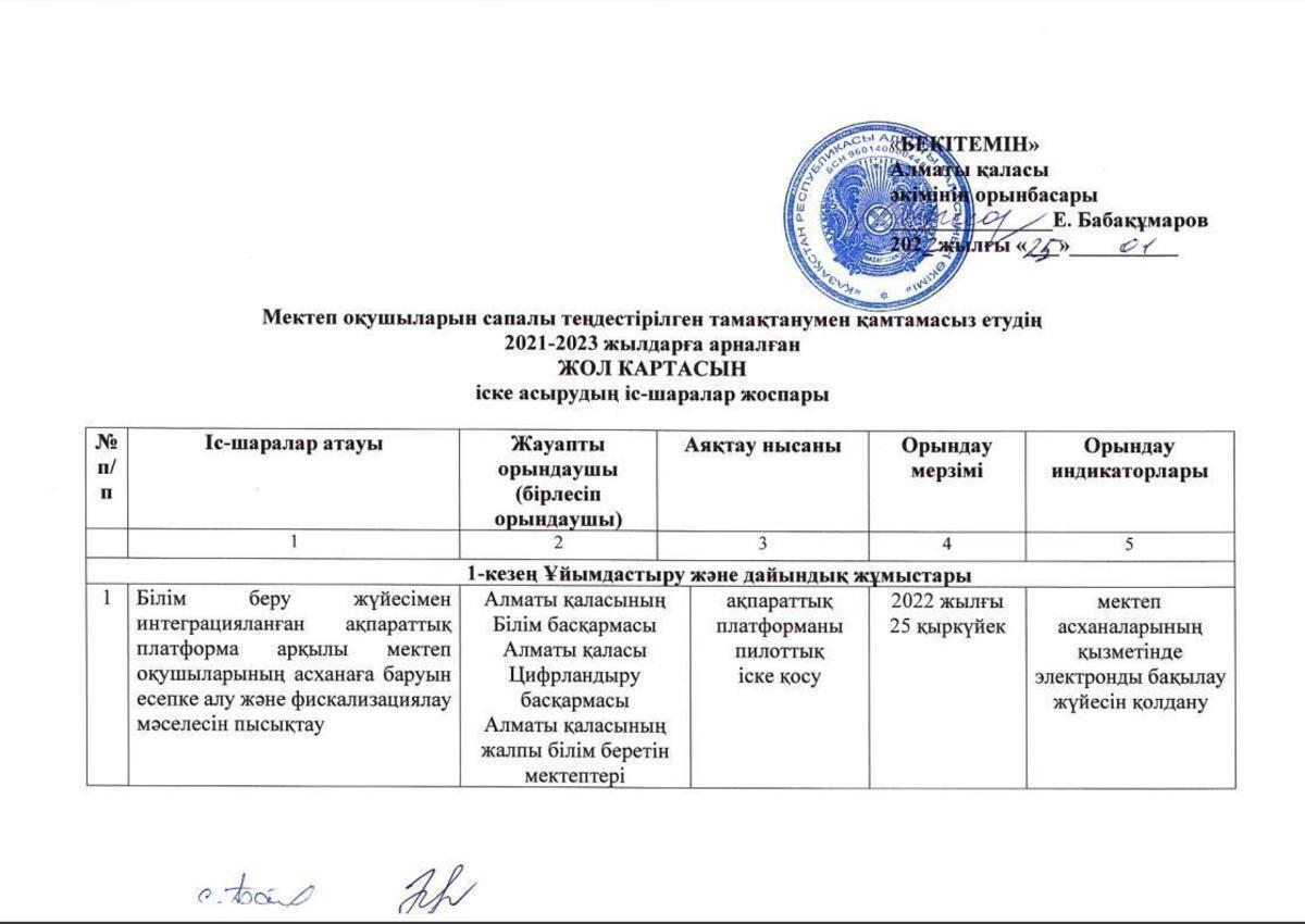 03 ақпан 2022 0 1 2 3 4 5 План мероприятий по реализации ДОРОЖНОЙ КАРТЫ для обеспечения школьников качественным сбалансированным питанием на 2021-2022 учебный год Осы беттің QR-коды:QR-код этой страницы: