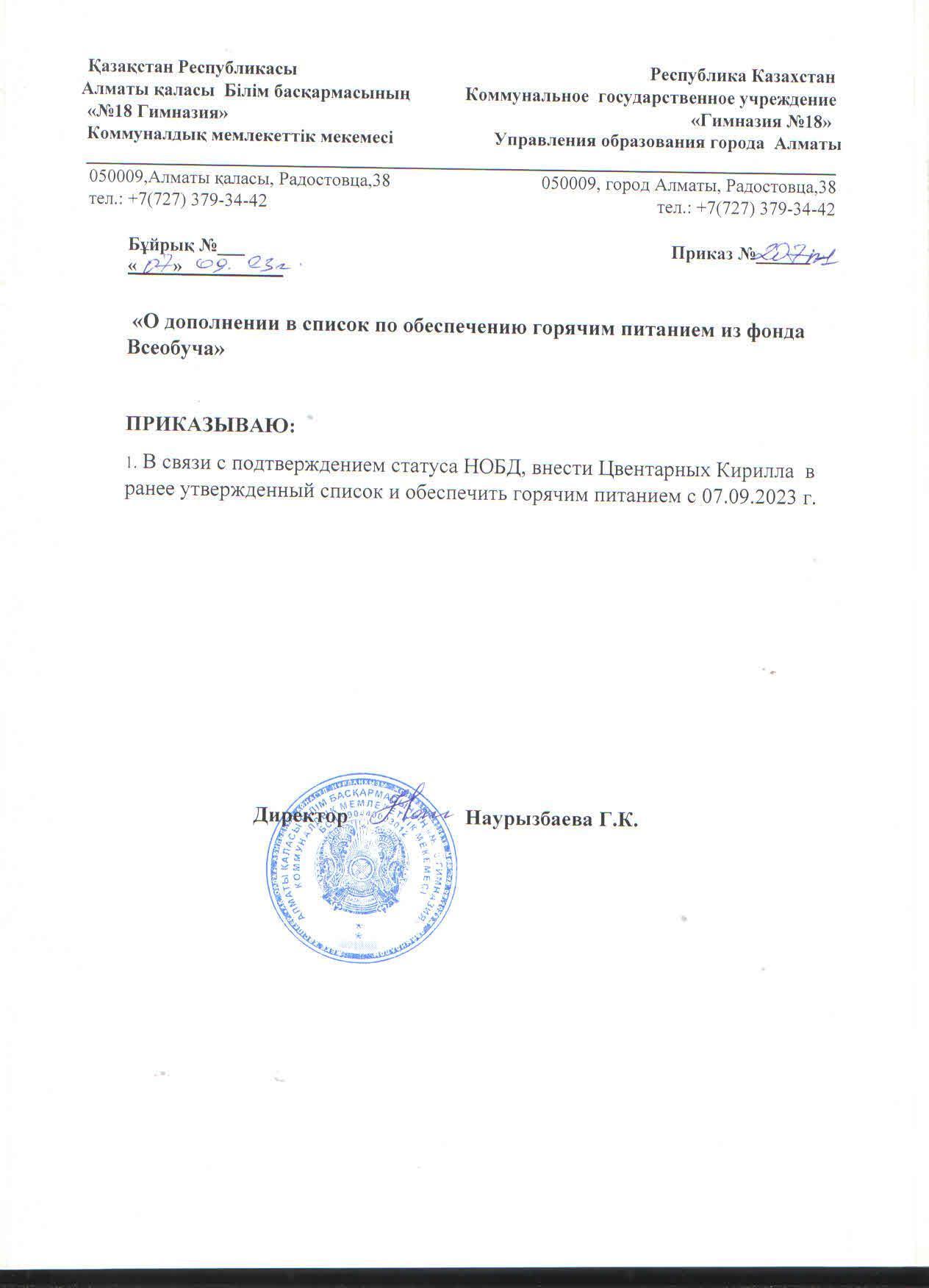 07 қыркүйек 2023 0 1 2 3 4 5 Бұйрық №207 п-1 Всеобуч қорынан ыстық тамақпен қамтамасыз ету тізіміне қосымша Осы беттің QR-коды:QR-код этой страницы: